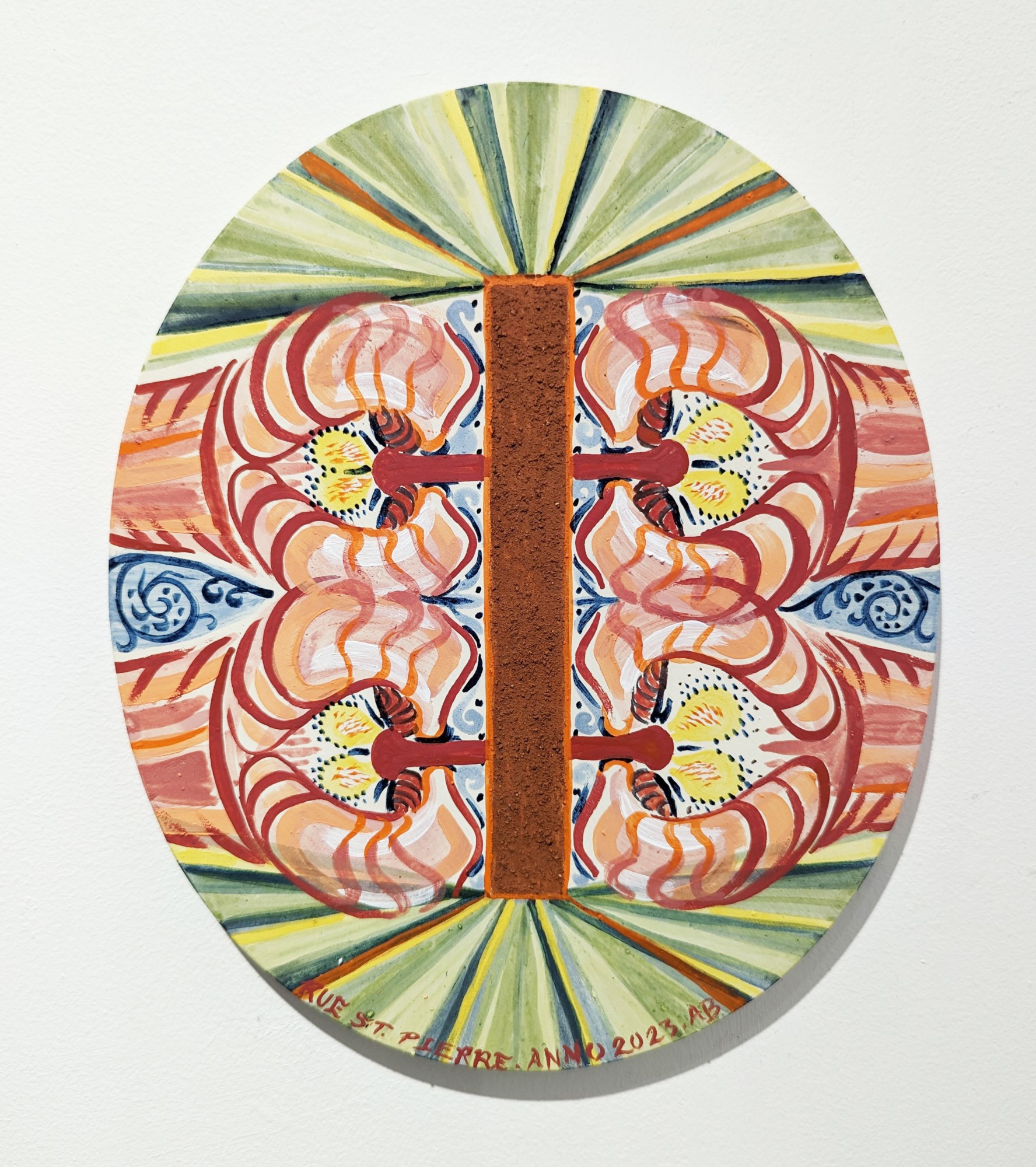 Crushed rock from Rue St. Pierre (Hyeres, France), Norwegian rosemaling pigments and size on wood