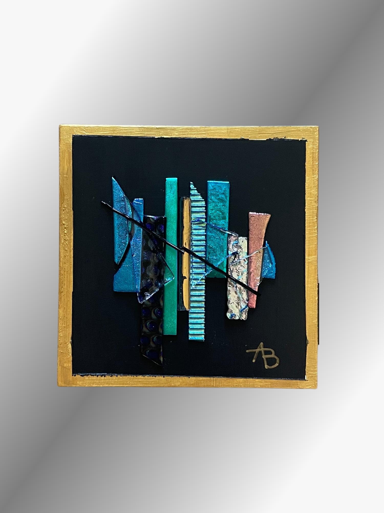 "Lustrous" is a stunning fused glass art piece that will add a touch of elegance and intrigue to any space. The dynamic dichroic glass design shimmers and shifts in the light, creating a truly magical and otherworldly effect. Mounted on a sleek black painted wood block with gold painted sides, "Lustrous" is a sophisticated and eye-catching piece that can stand alone as a statement art piece or be coupled with other blocks to create a striking, cohesive display. It is a unique piece, making it a one-of-a-kind addition to any fused glass art collection. Experience the enchanting beauty of "Lustrous" and elevate your space with its captivating presence.