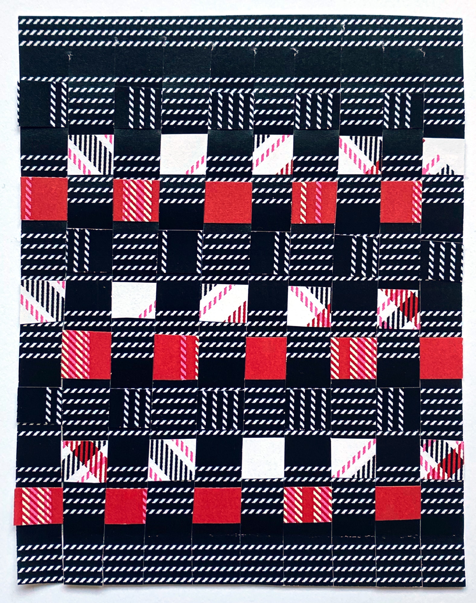 From January 2019 to June 2021, I created small scale paper weavings out of reject color laser printouts from my day job. I designed the three original prints for women's and men's loungewear.