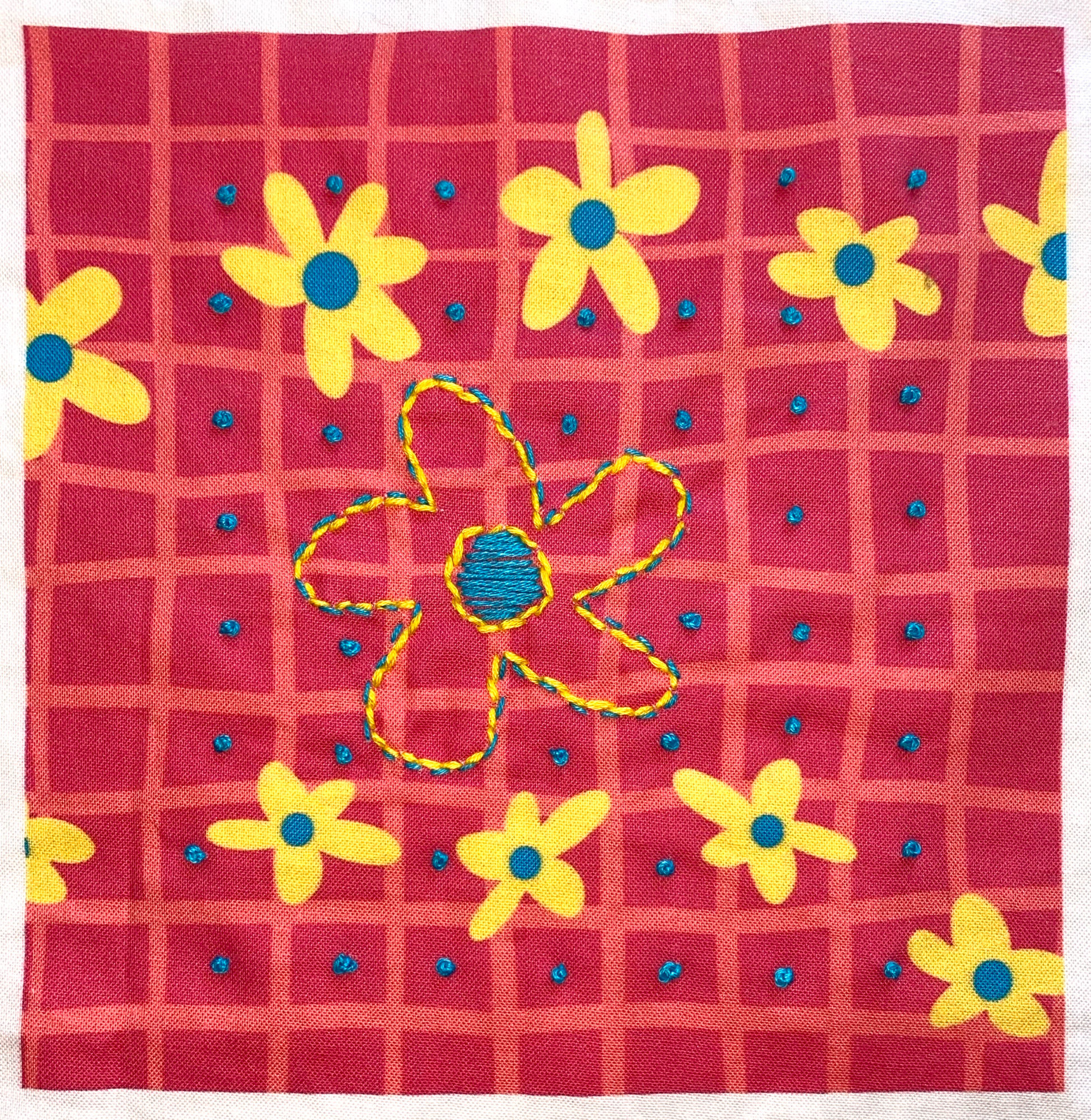 embroidery on printed cotton percale