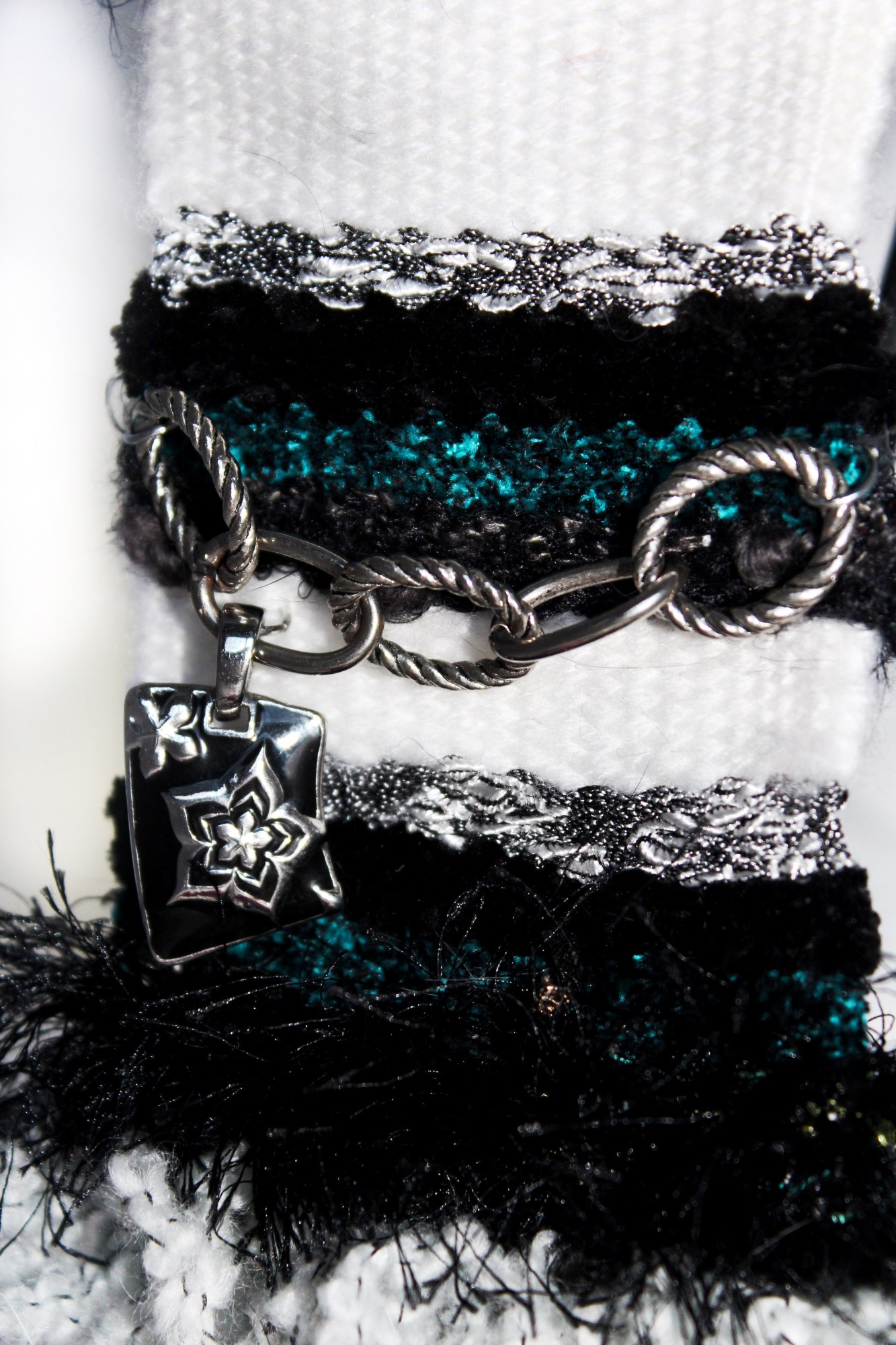 Fiber Art Creations using repurposed fiber & jewelry, found treasures from a non profit that supports the developmentally & intellectually challenged. Support a cause with your purchase of Artwork created in the USA.