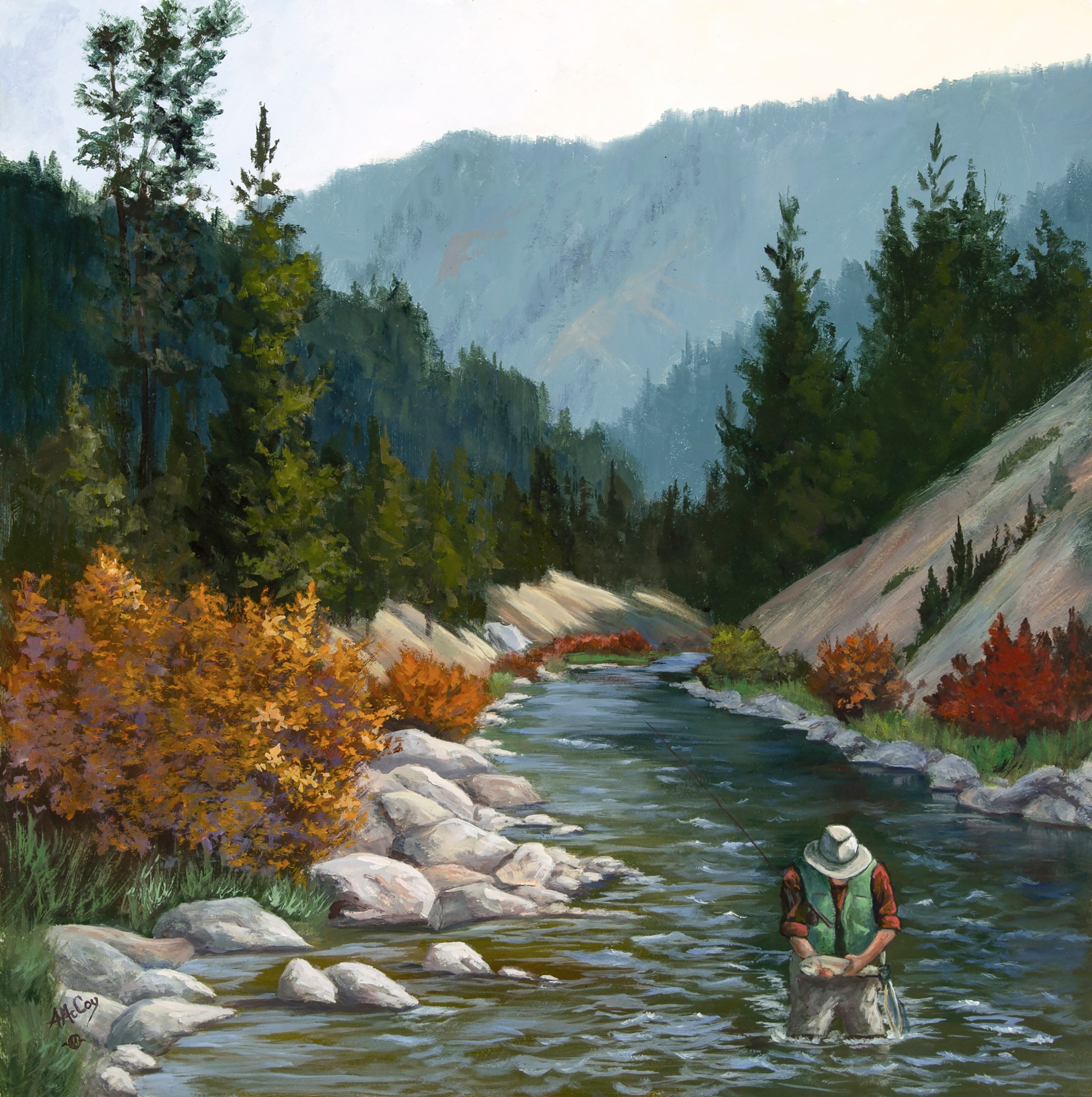 The St. Regis River is beautiful and reminds me of the Gallatin. Hubby caught a beauty and carefully released him, but I was able to quickly snap a photo to add into this plein air painting.