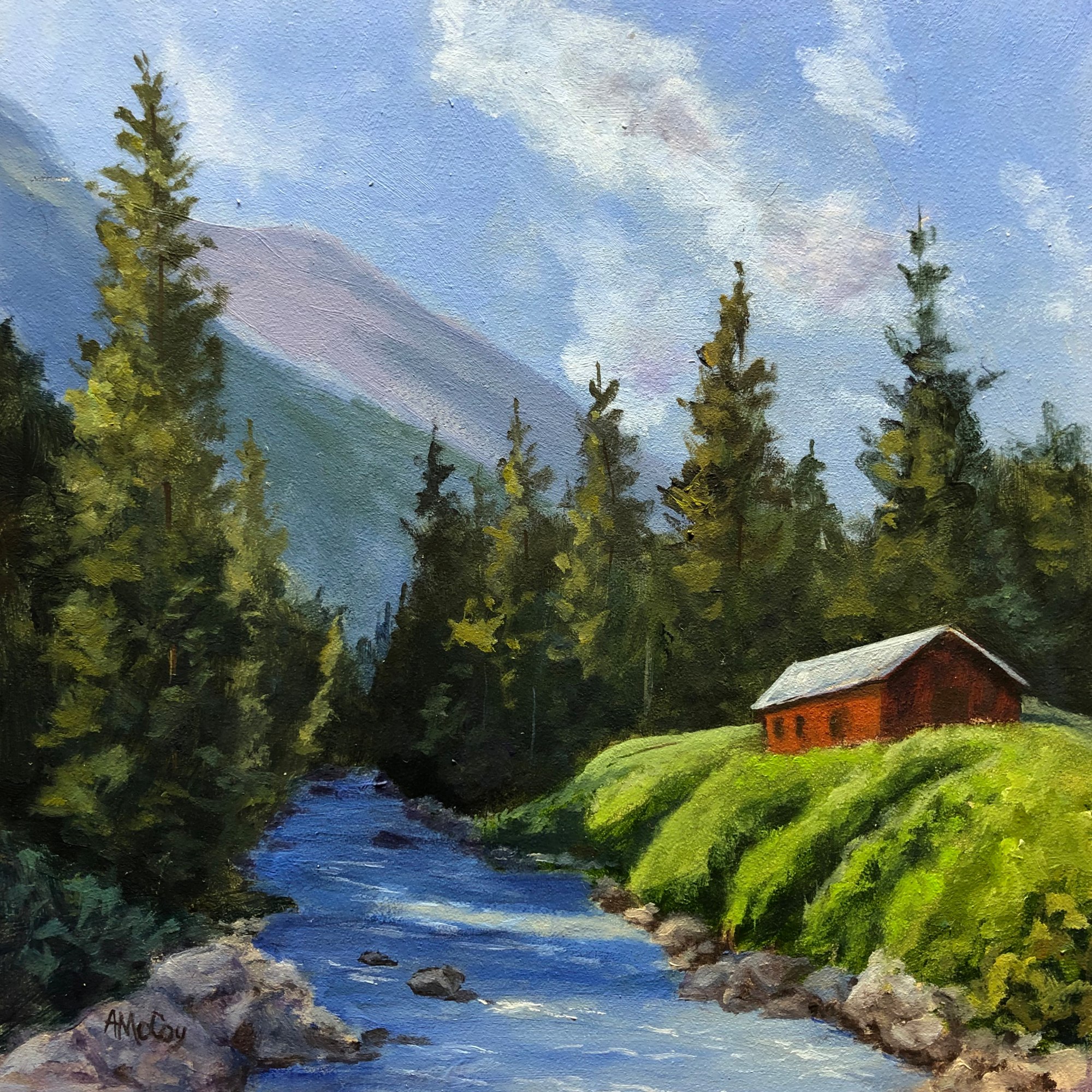 Montana has at least two Rock Creeks, and this one is a blue ribbon trout stream south of Missoula. The deep, late afternoon shadows across the stream attracted me to this scene. I wish I owned the little cabin!
