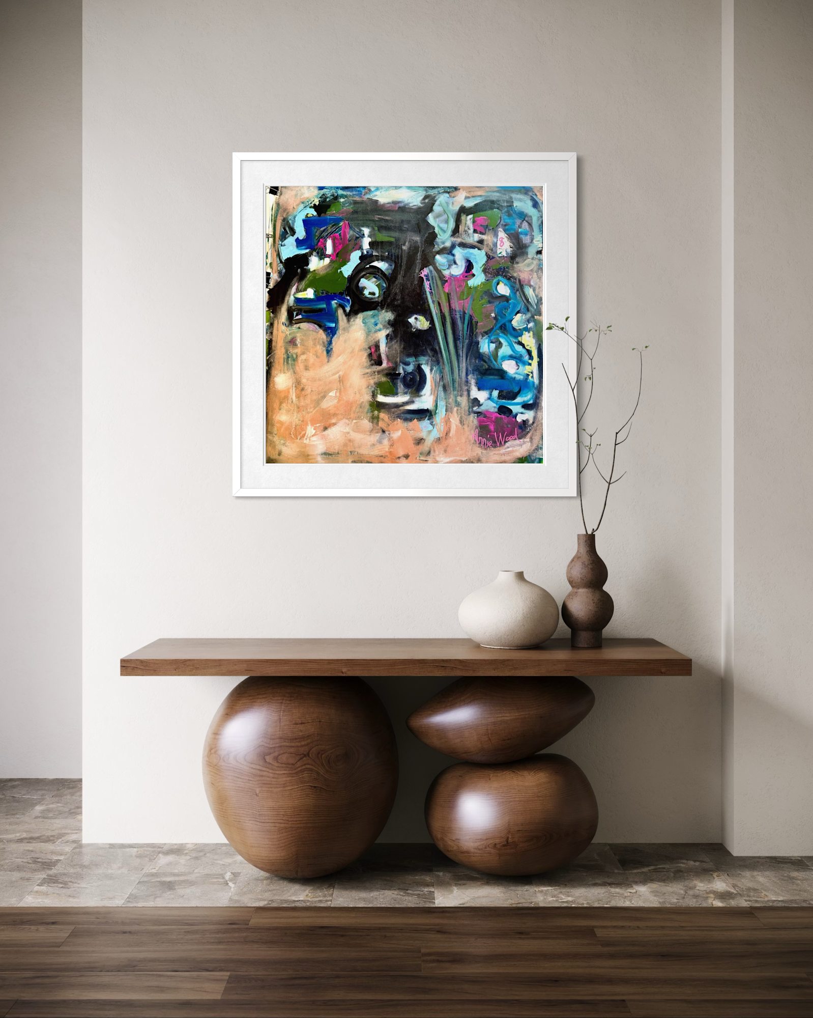 Hanging Options This piece arrives unframed, giving collectors the freedom to choose how they want it to live in their space. It can be: • tacked directly to the wall for a raw, studio feel • stretched over bars for a traditional presentation • mounted on a panel for a clean, modern look • or hung using visible clips for an airy, contemporary vibe