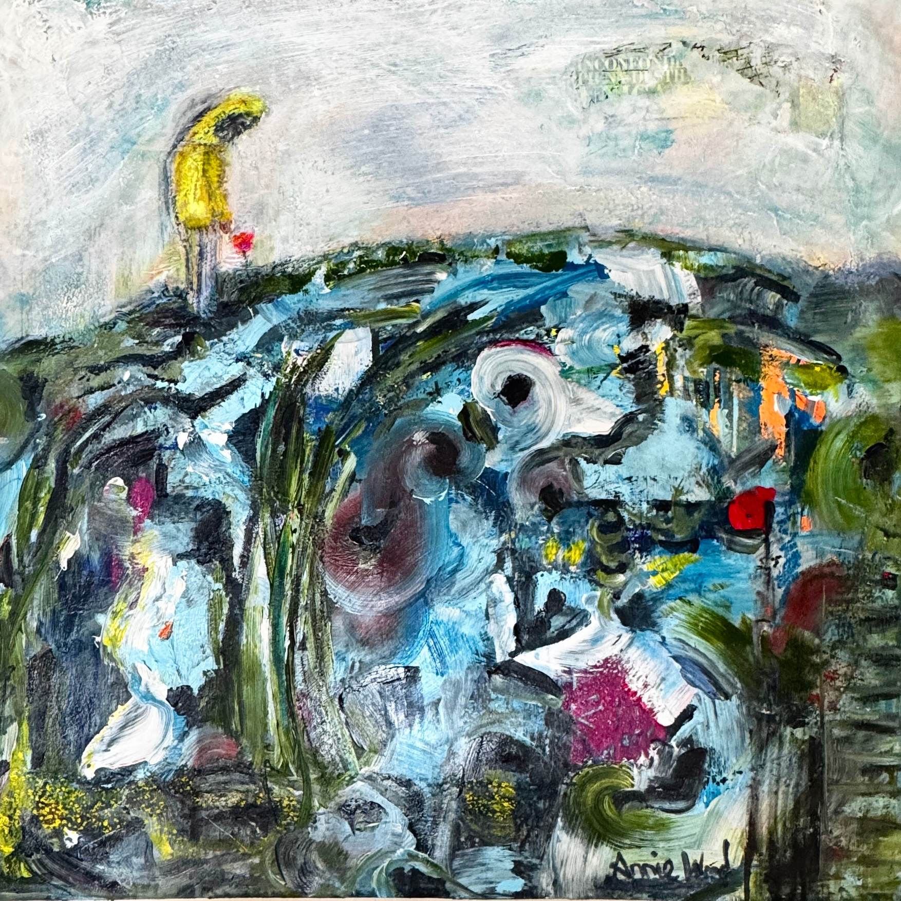 This piece carries a mix of energy and softness. The layered surfaces create a feeling of movement, while the textured marks add a sense of depth and curiosity. There is a quiet emotional charge running through it, something reflective and a little raw. It holds both intensity and calm at the same time, the way a moment of honesty can settle everything for a second.