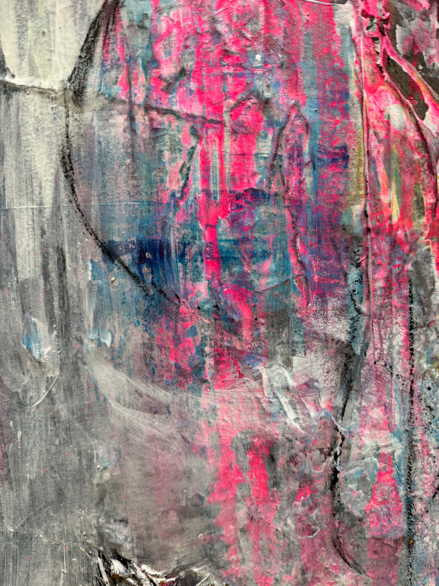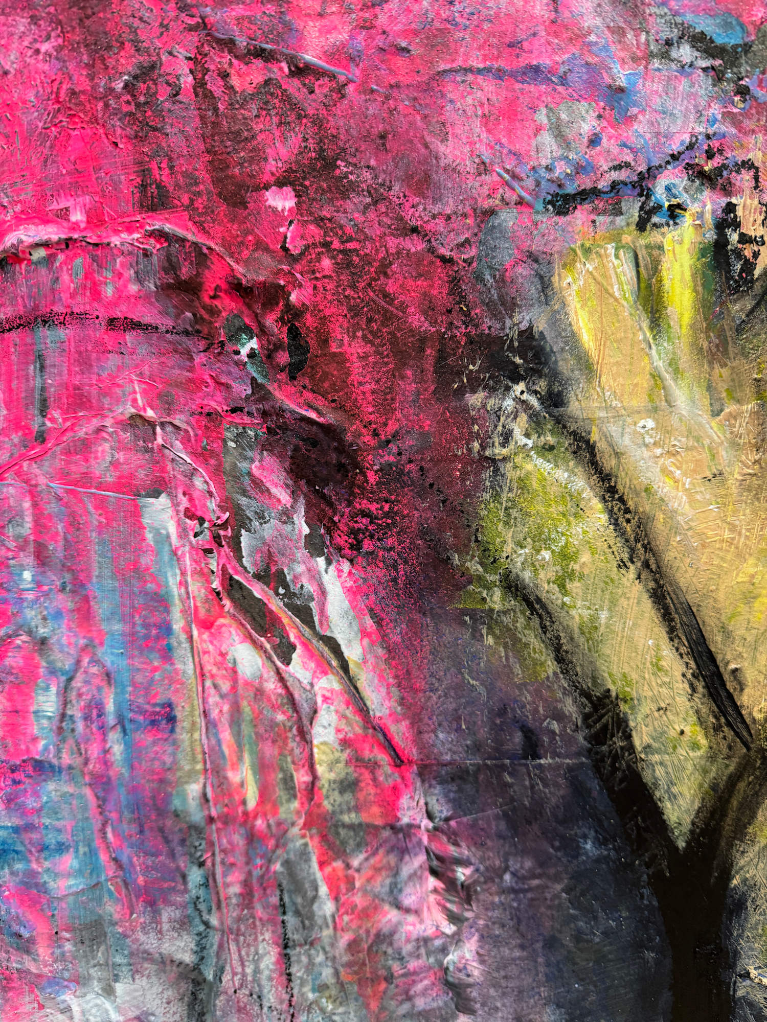 I started by painting over an older work, letting fragments of its past show through as a reminder that growth often comes from what once felt finished.