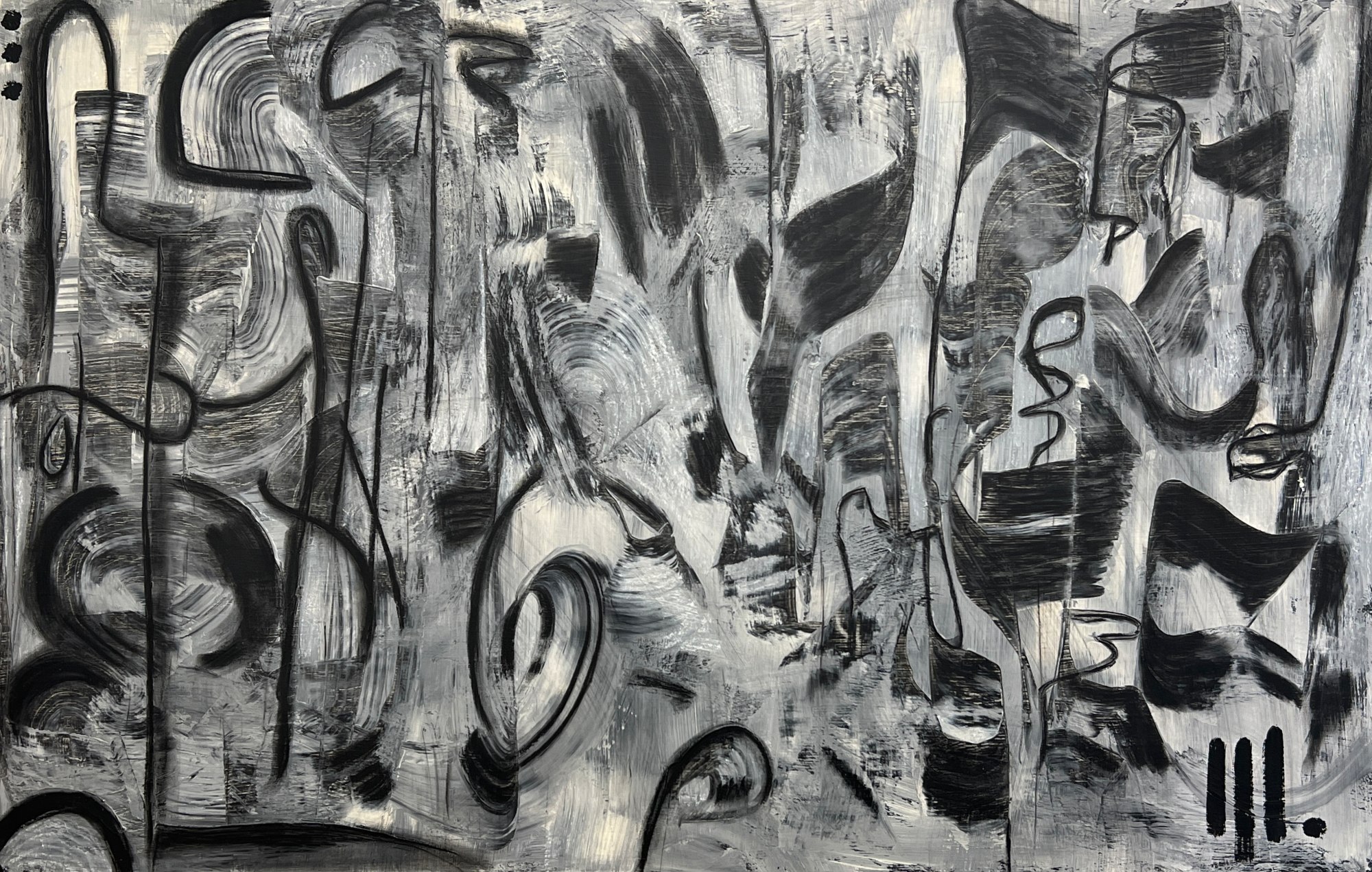 I was listening to some great Blues, Eric Clapton, BB King, and Etta James, to name a few; I let my inspiration and feelings flow; the sense of music came out on the board, which is the substrate of this painting.