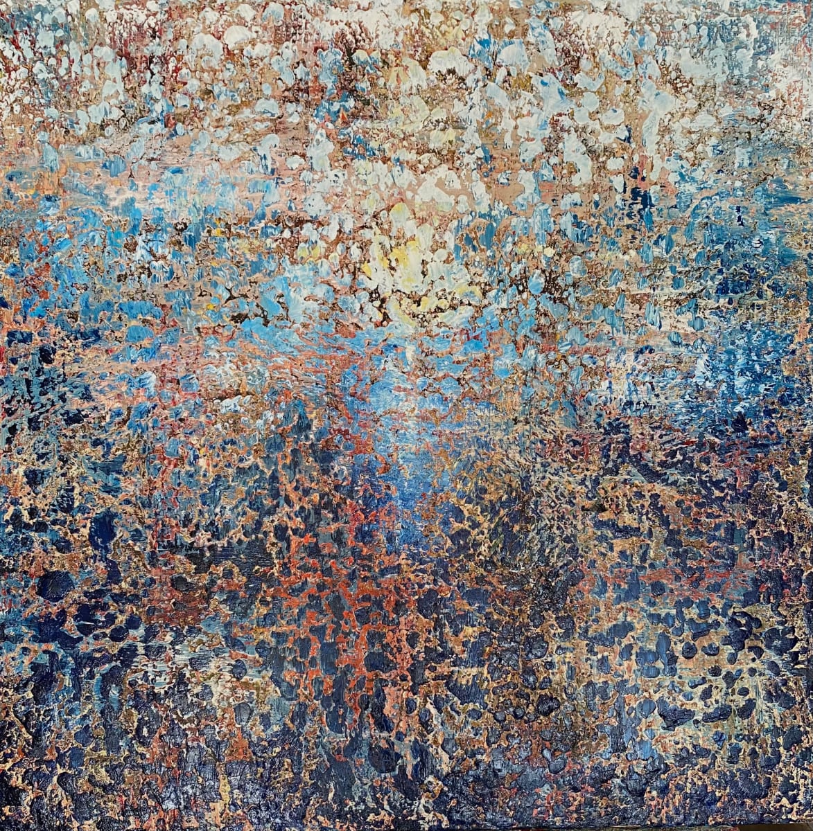 My textural abstract work comes from an accumulation of years of exploring texture and color relationships. Each piece is comprised of layers of oil paint, using no medium, and left to dry prior to the application of the next layer. These paintings are reflective of the many layers we all possess within the totality of being human. Each event, each tragedy, each joy leaves a mark. This has been a theme throughout all of my various styles of artistic expression. But I find the palette knife/squeegee work to be the most honest in its seemingly random happening that results in a beautiful tapestry of color, form, and shape.