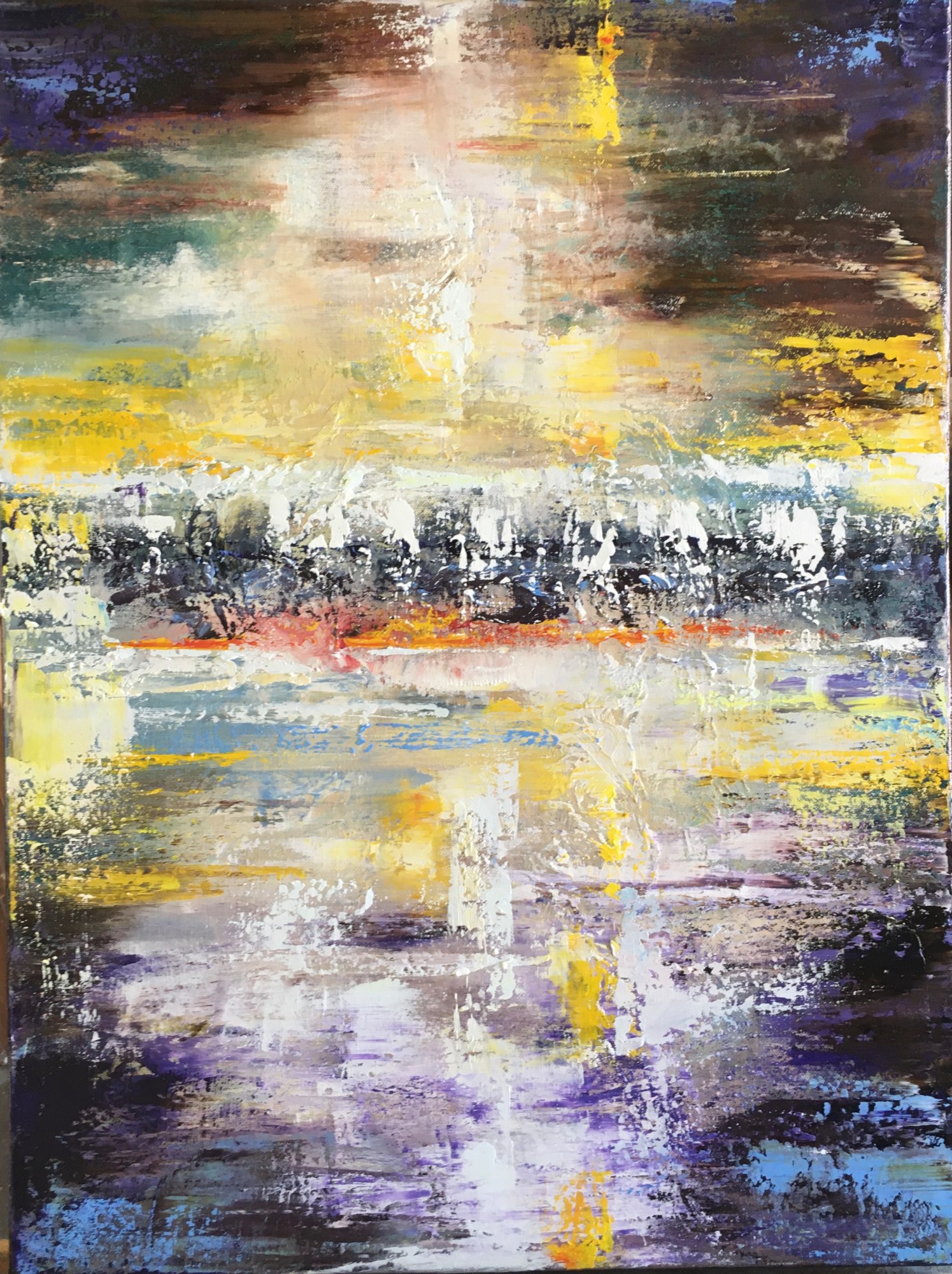 Part of my exploration of sounds through abstract palette knife paintings. Contact via website to purchase