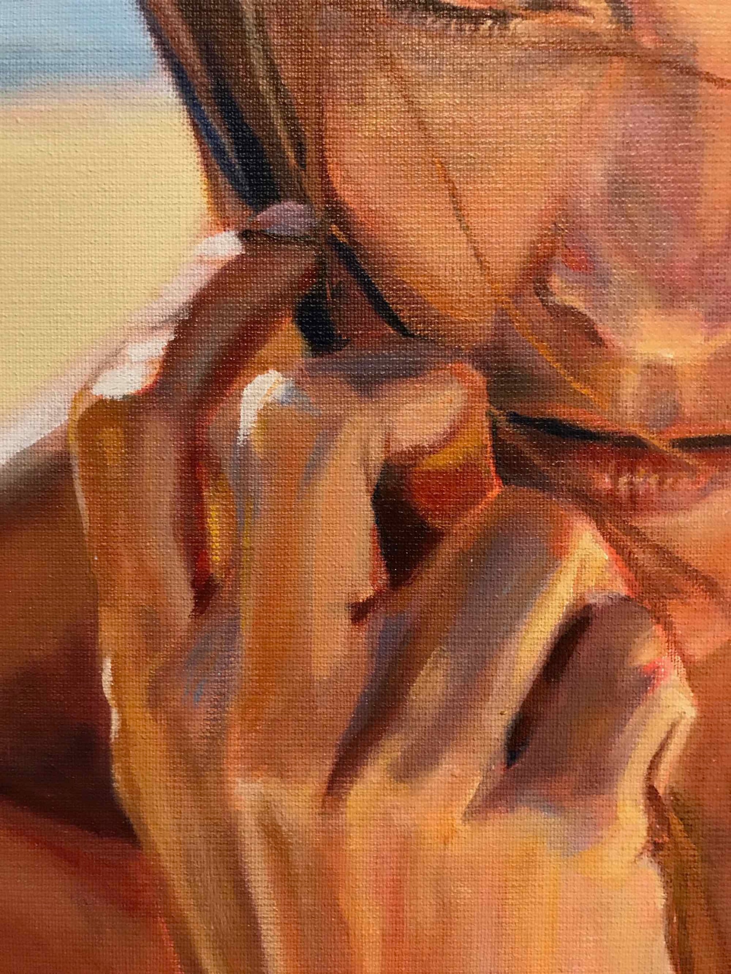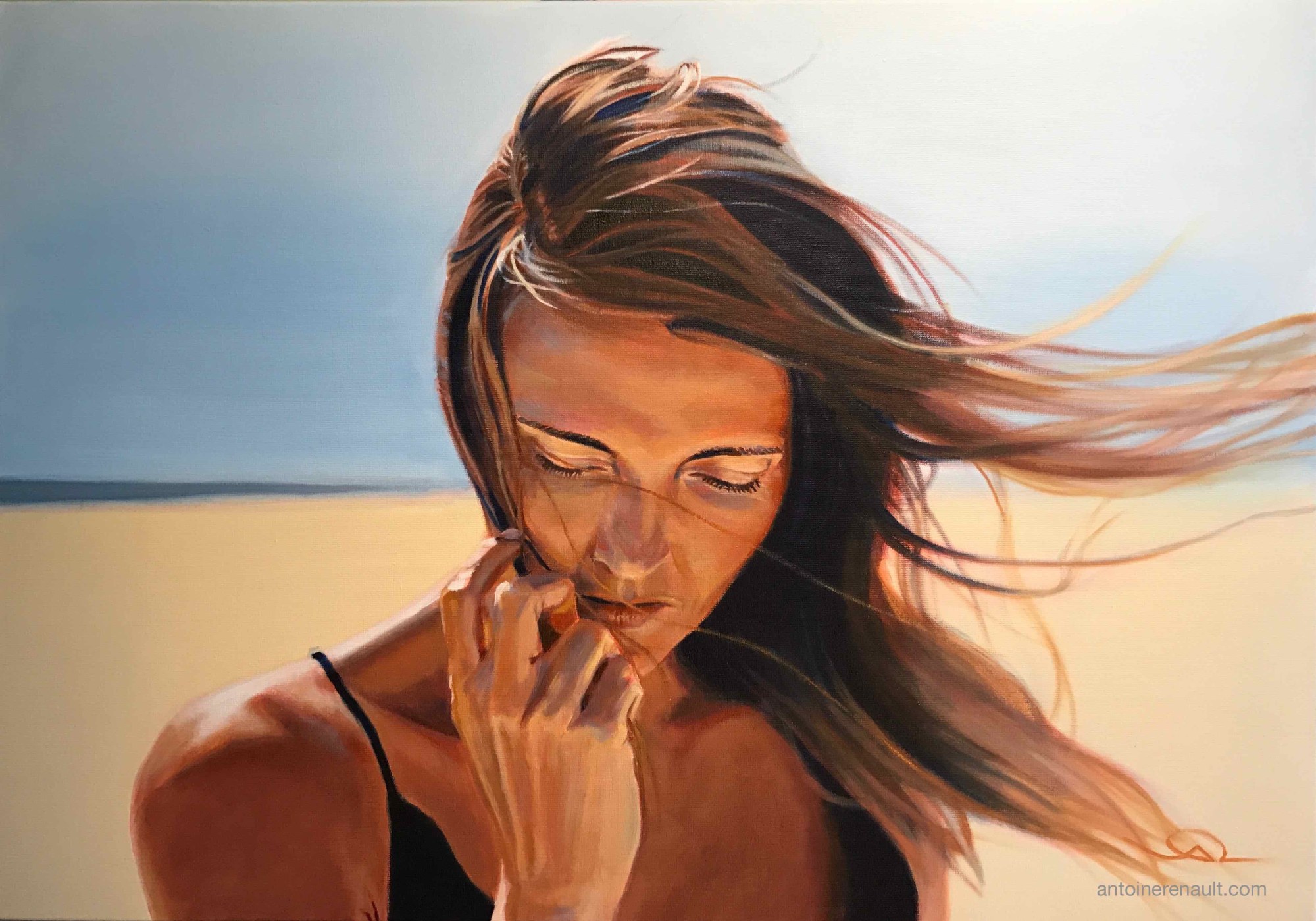 Inspired by a photo taken on a beach in the Canary islands. I think I like painting the hair as much as I like painting the water.