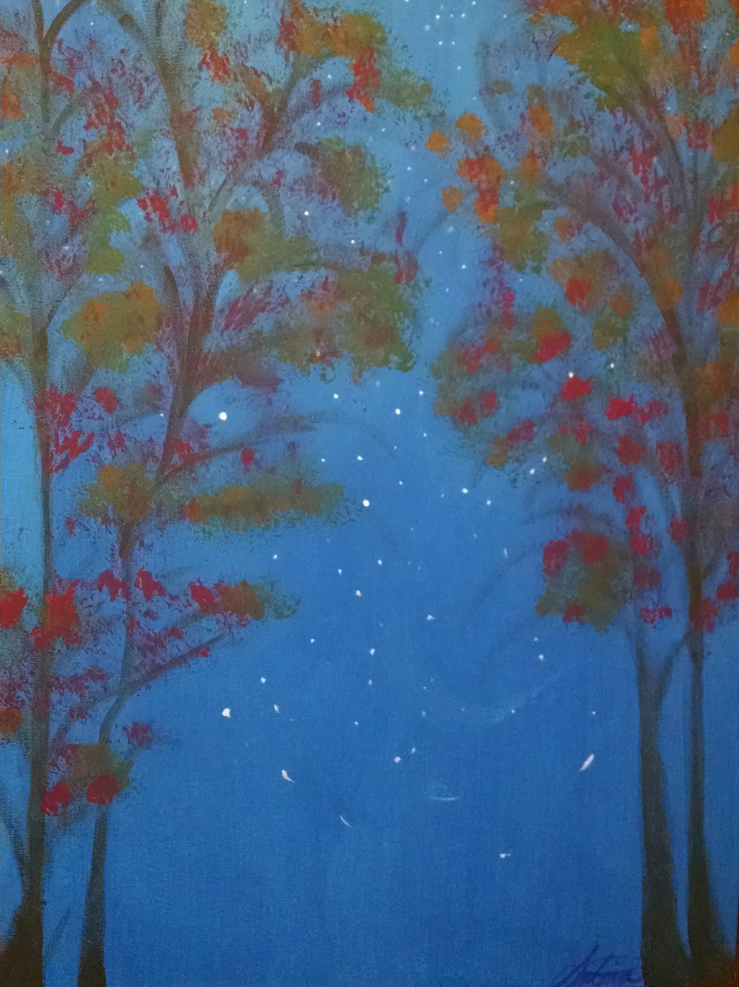 One snowy night with the trees, acrylic painting on canvas. This can be printed on textured paper, canvas, or poster board paper. The original work is not for sale. Certificate of Authenticity is available. Shipping in USA only and shipping is free.