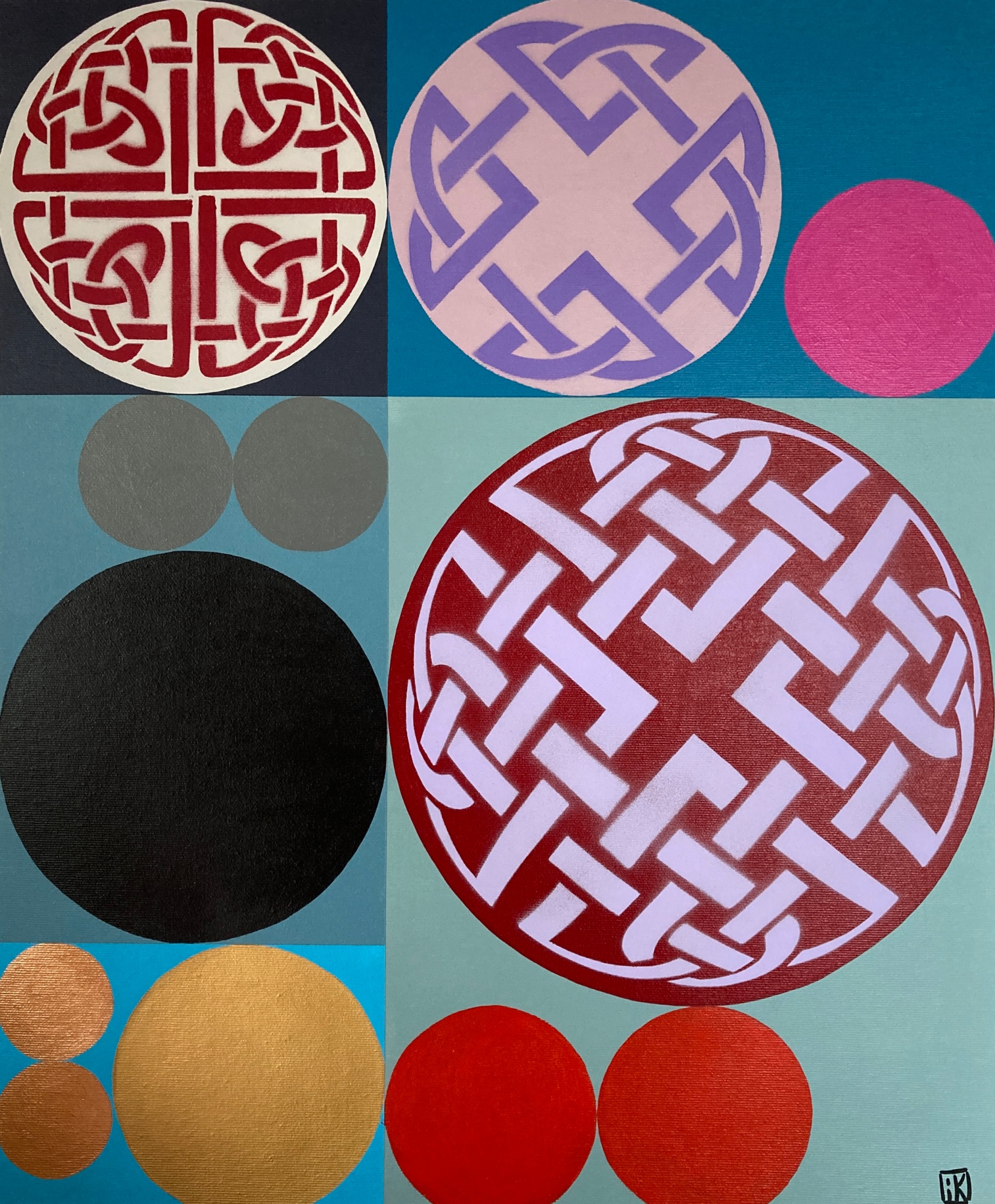 "Dara Knot I" is painted on cotton canvas with acrylic using the brush and spray paint.
