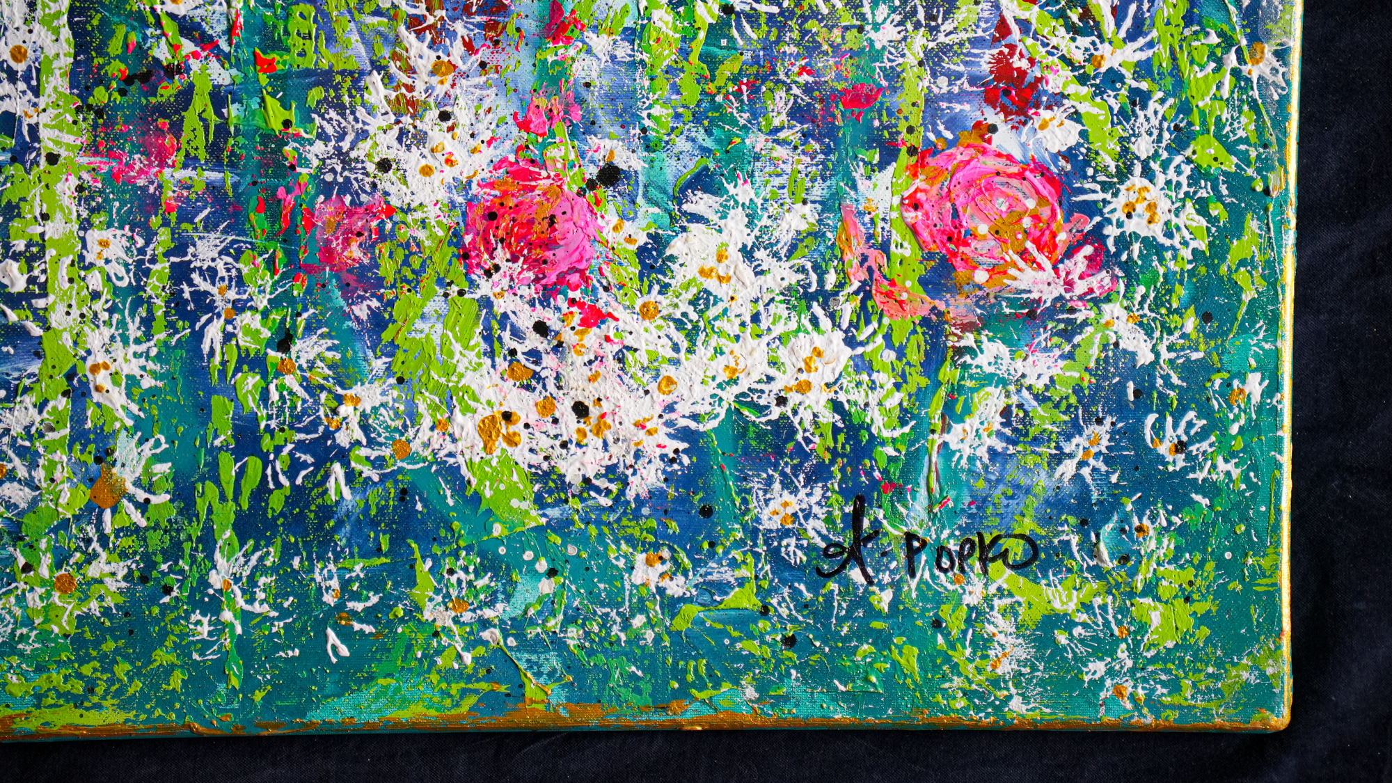 Popko focuses on transferring energy through art to bring positivity and light with vibrant, abstract, acrylic paintings.