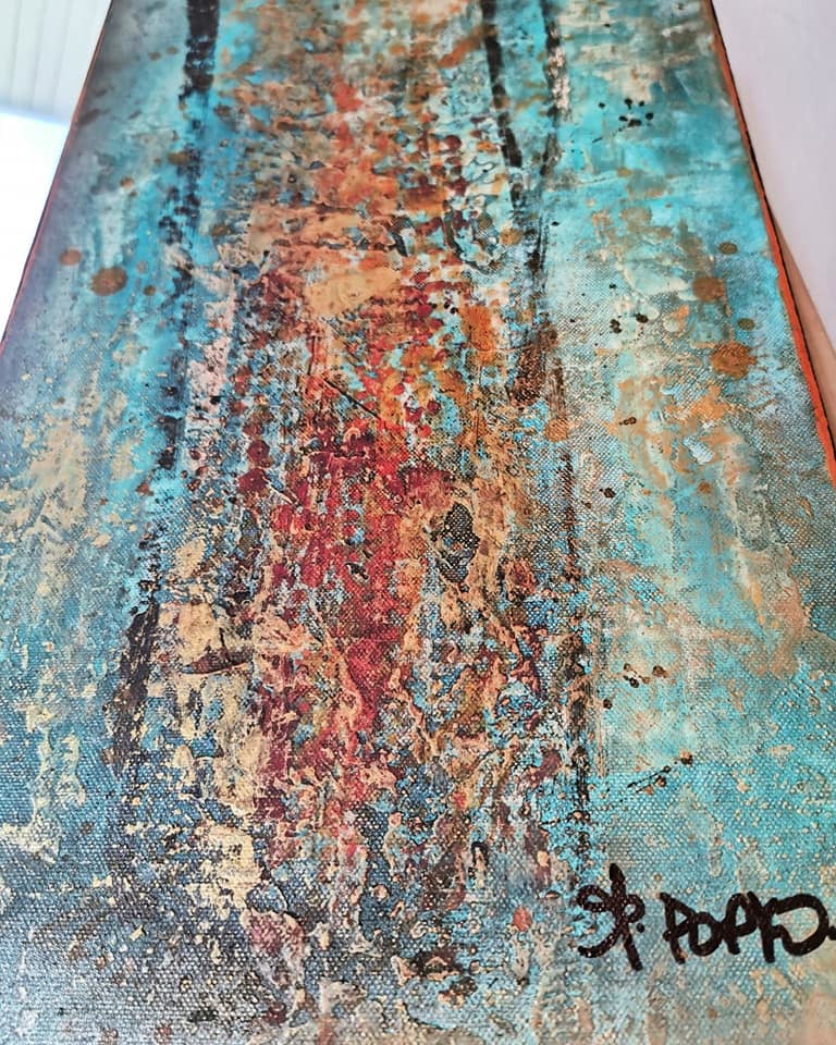 Popko focuses on transferring energy through art to bring positivity and light with vibrant, abstract, acrylic paintings.