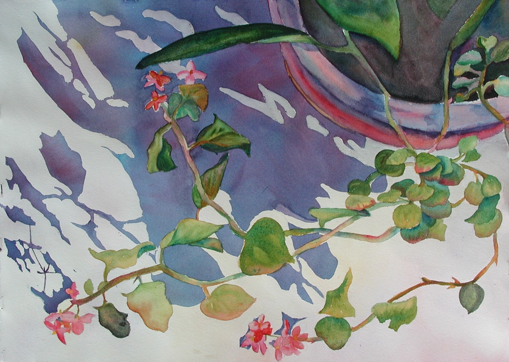 Shadows and light, one of many things that catch my eye. Of course, the natural curves of the plant compared to the perfect circular shape of the pot also provide contrast between man-made and natural forms.