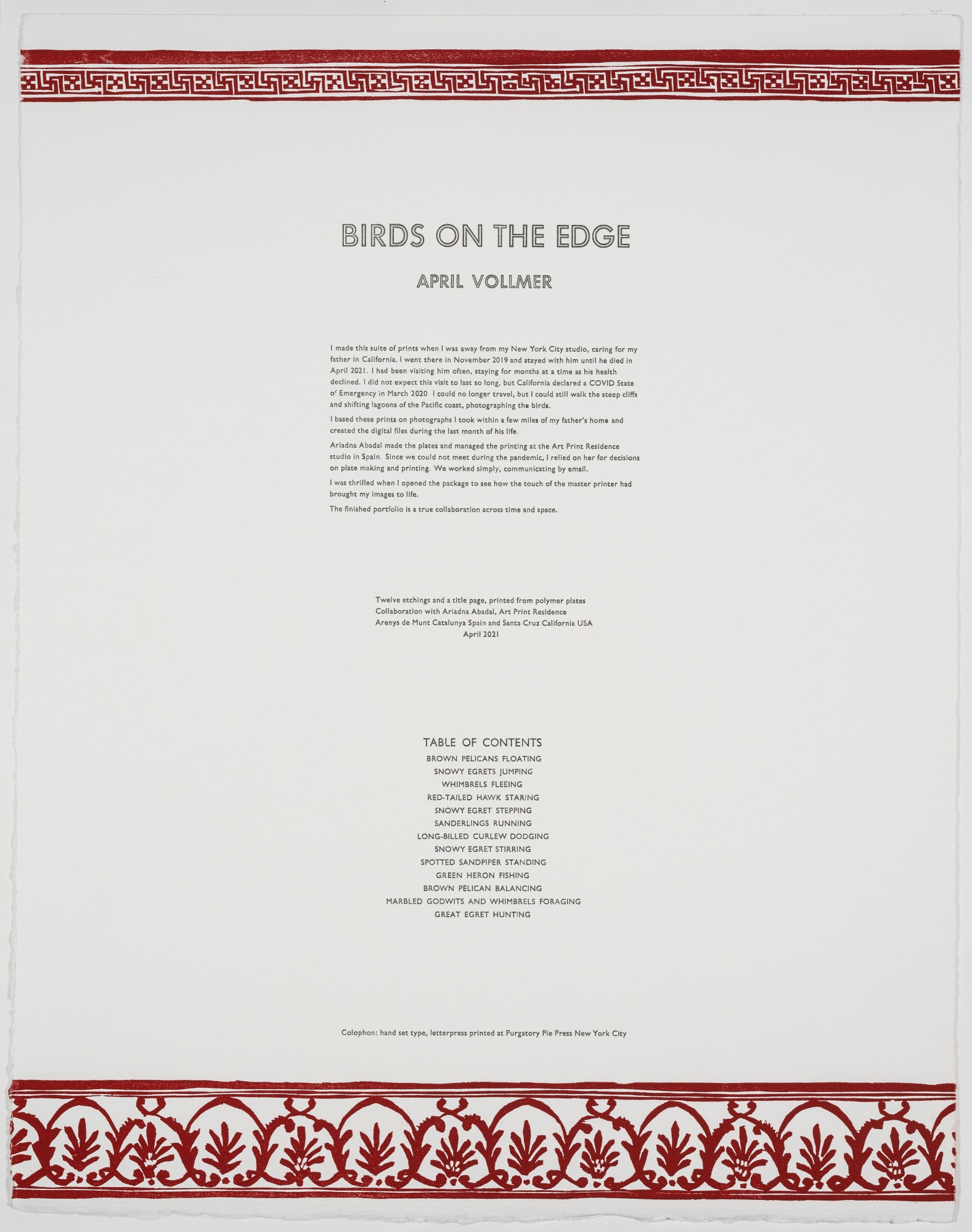 Title page printed by Purgatory Pie Press, included with purchase of more than one print from the suite