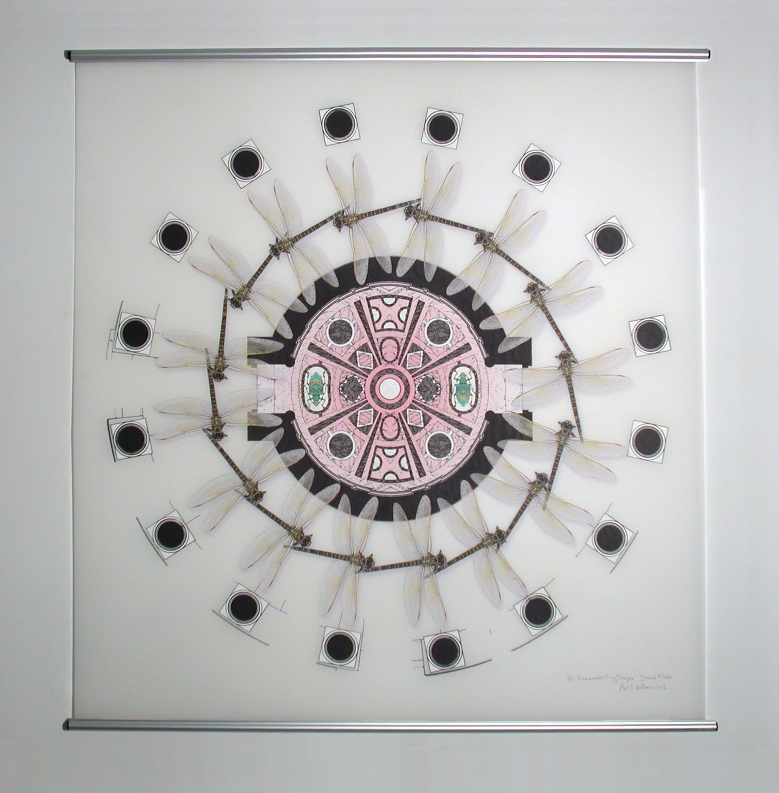Bramante's Tiny Temple Series: Subterranean floor plan with dragonflies, digital, 36 x 36 inches, $950