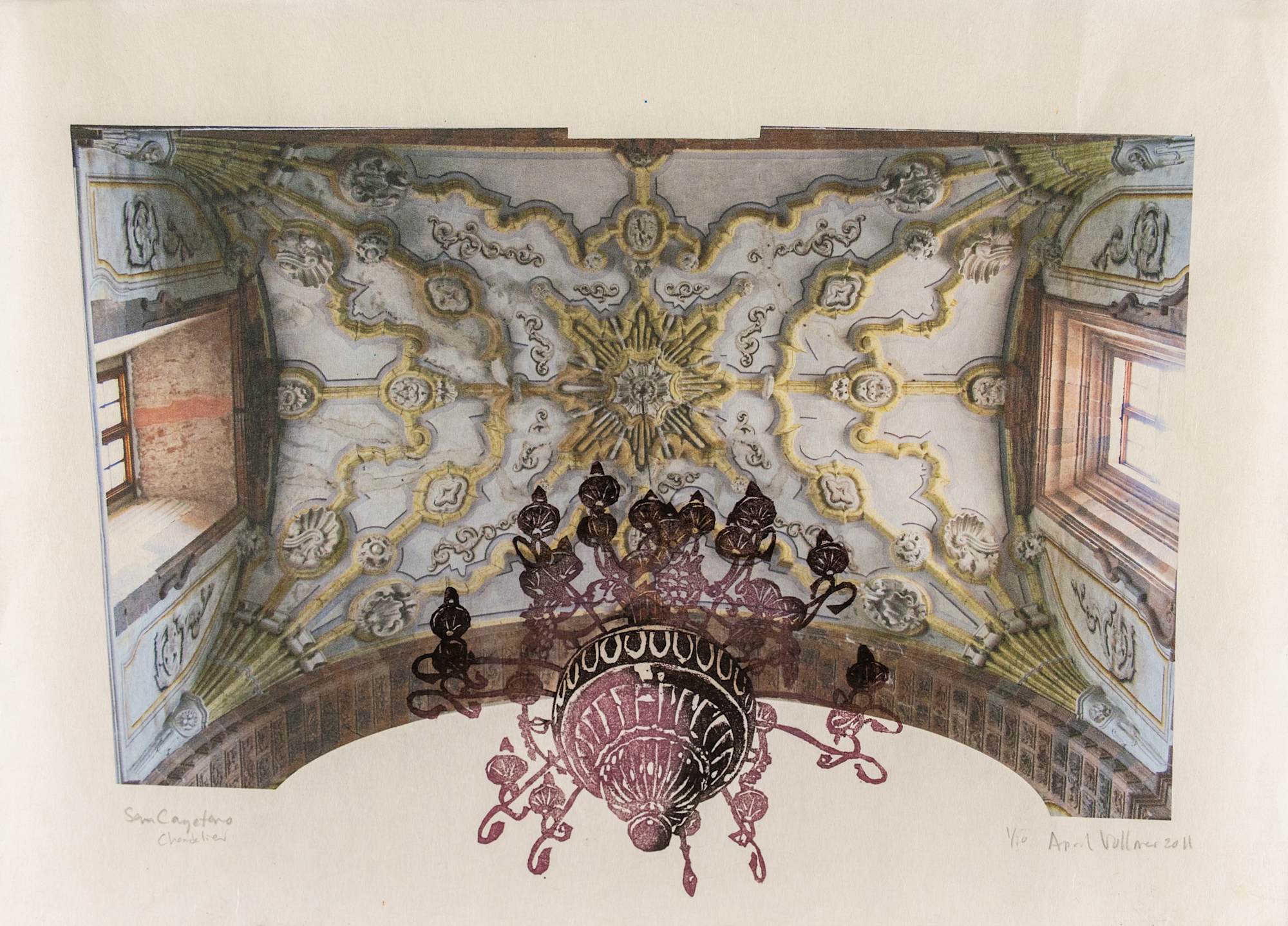 2011 Chandelier, digital print of ceiling of San Cayetano church with woodcut chandelier