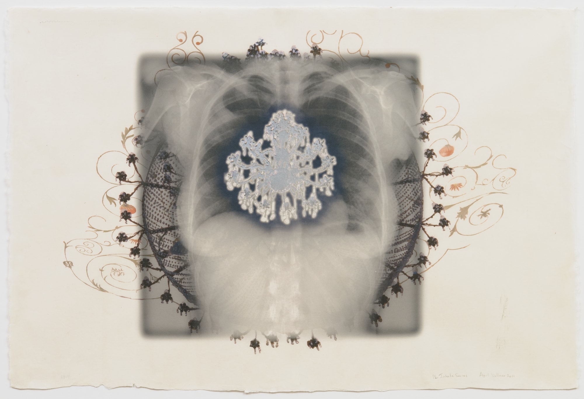 torso x-ray with chandelier, one of two on full size sheet of Gozen washi, printed at Anderson Ranch Arts Center
