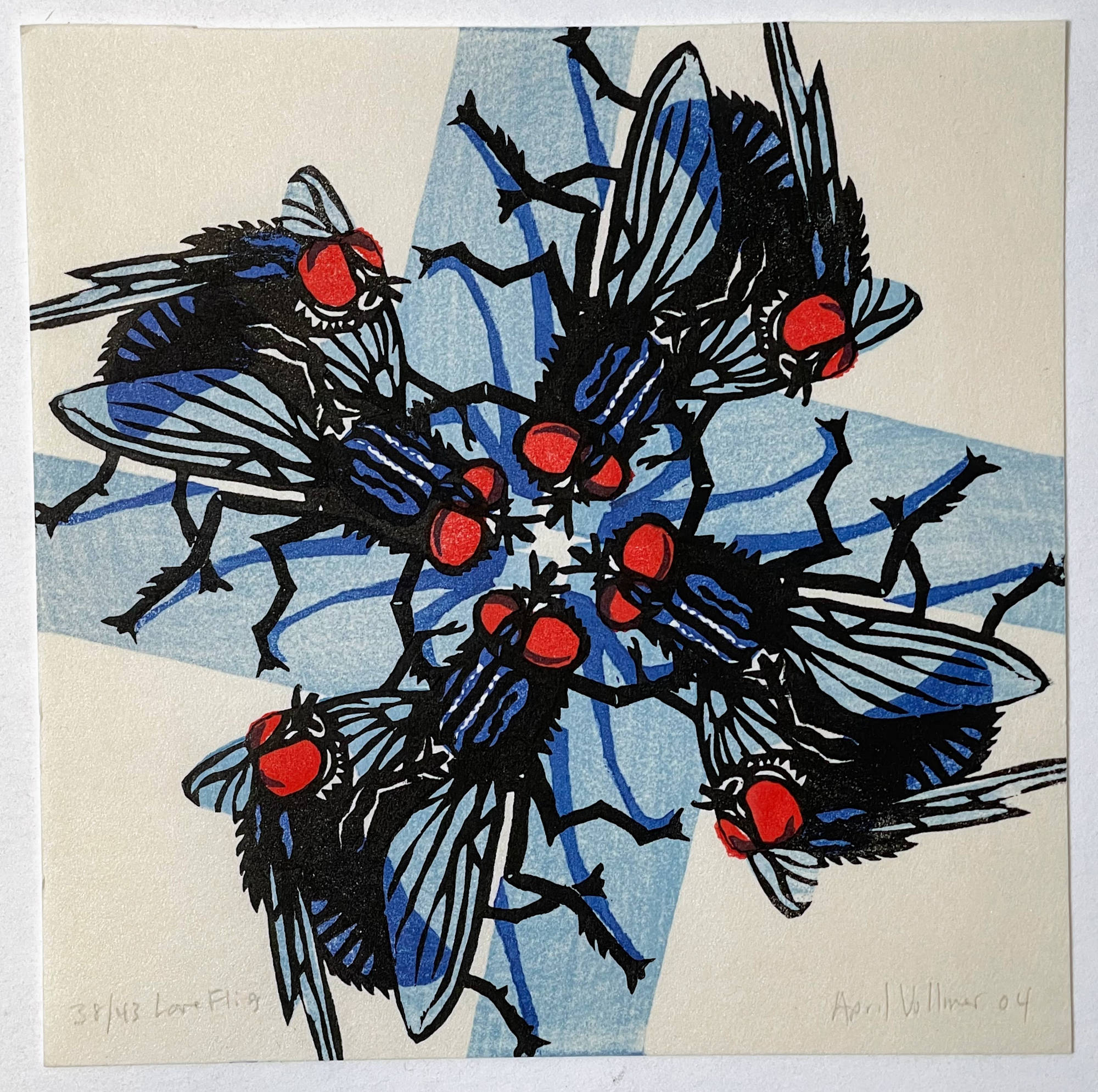 mating flies for Baren Woodblock Print Exchange #19 Shunga (16 impressions)