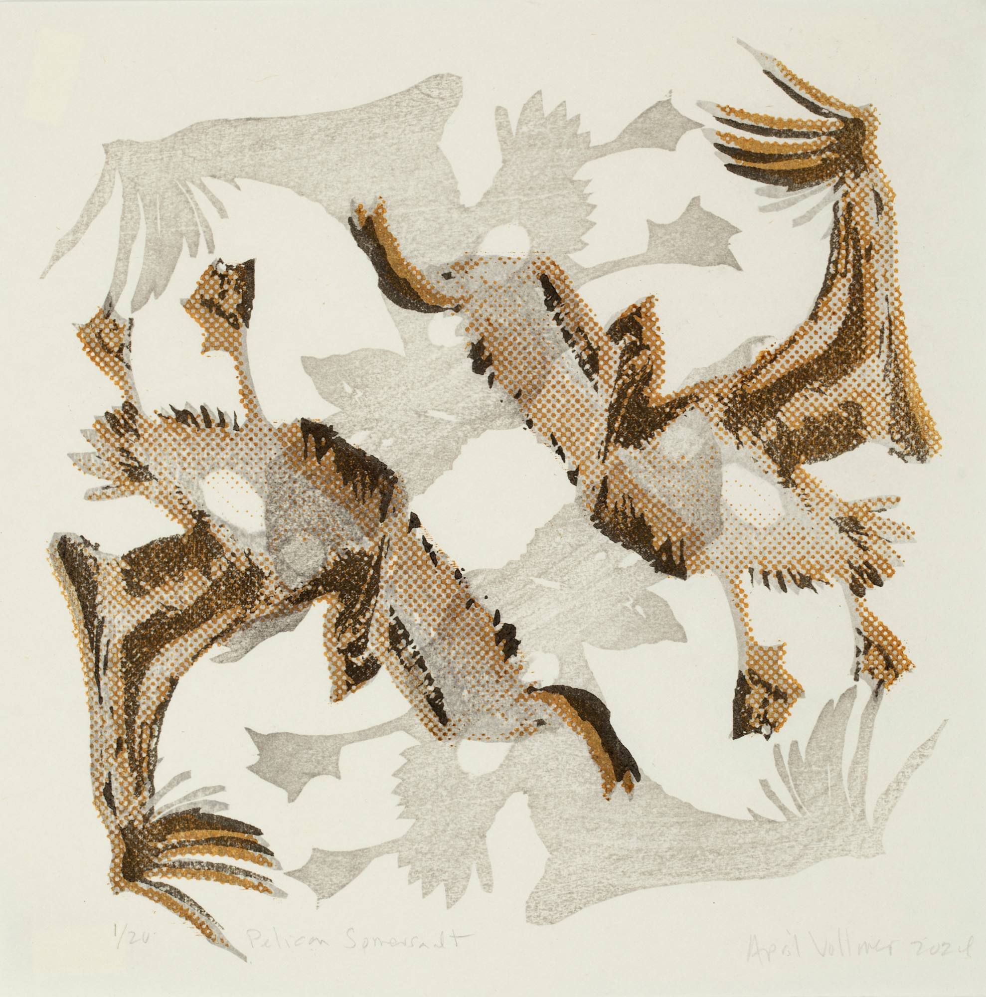 Printed by the artist from two laser cut and one hand cut block, the tones and colors are somewhat varied. The blocks were cut at Anderson Arts Center Residency at a class with Mike Lyon and finished in my New York studio. Edition of 20
