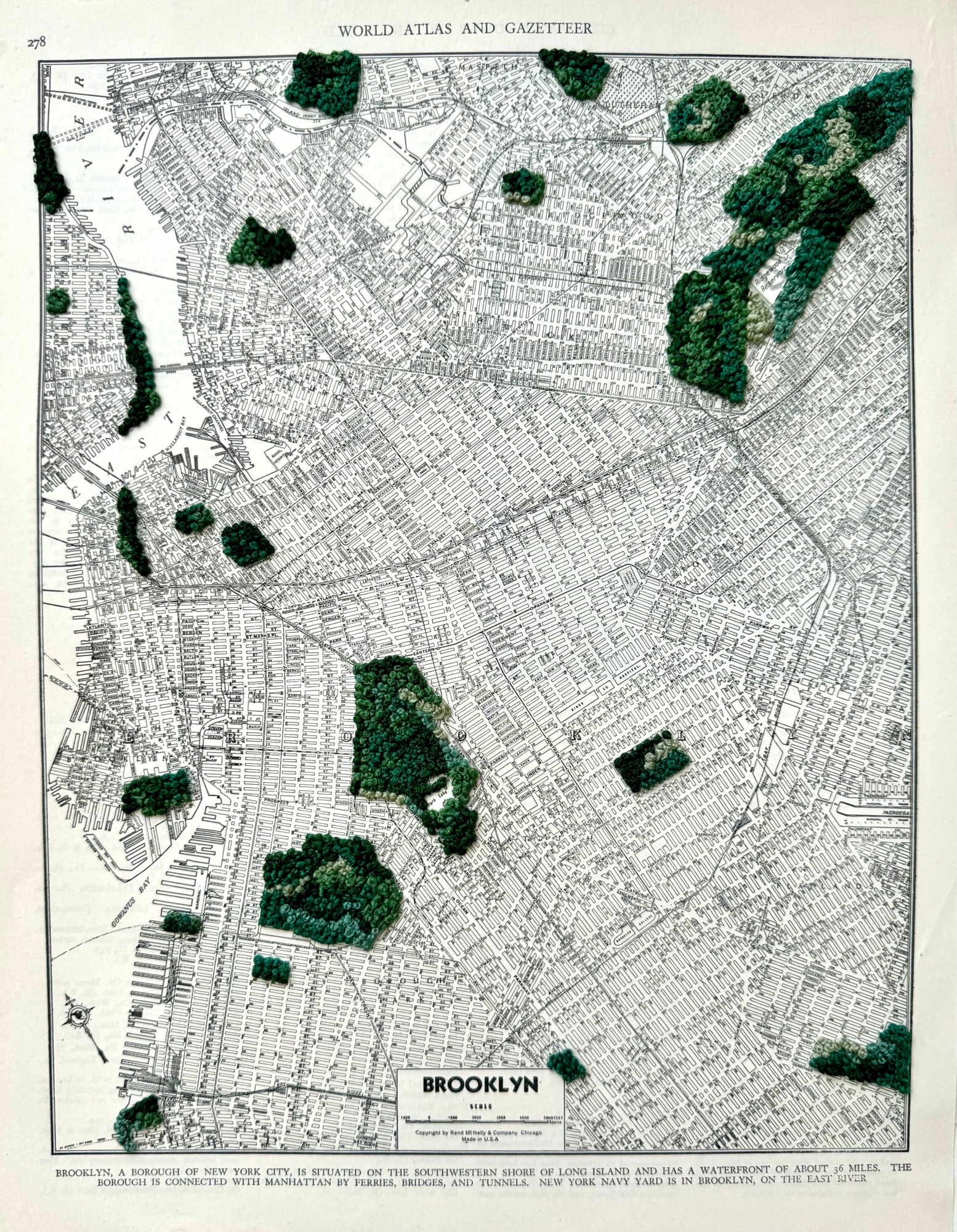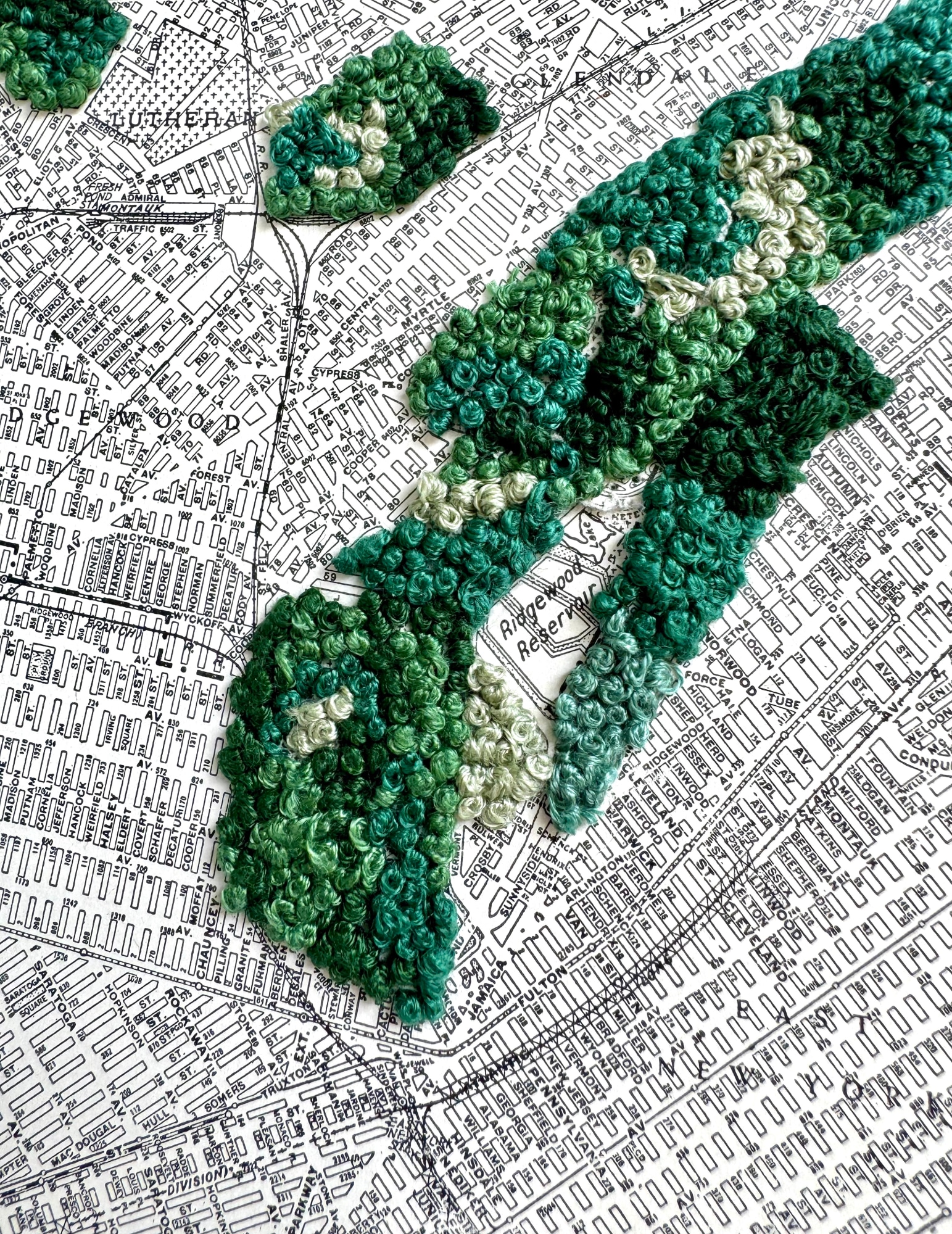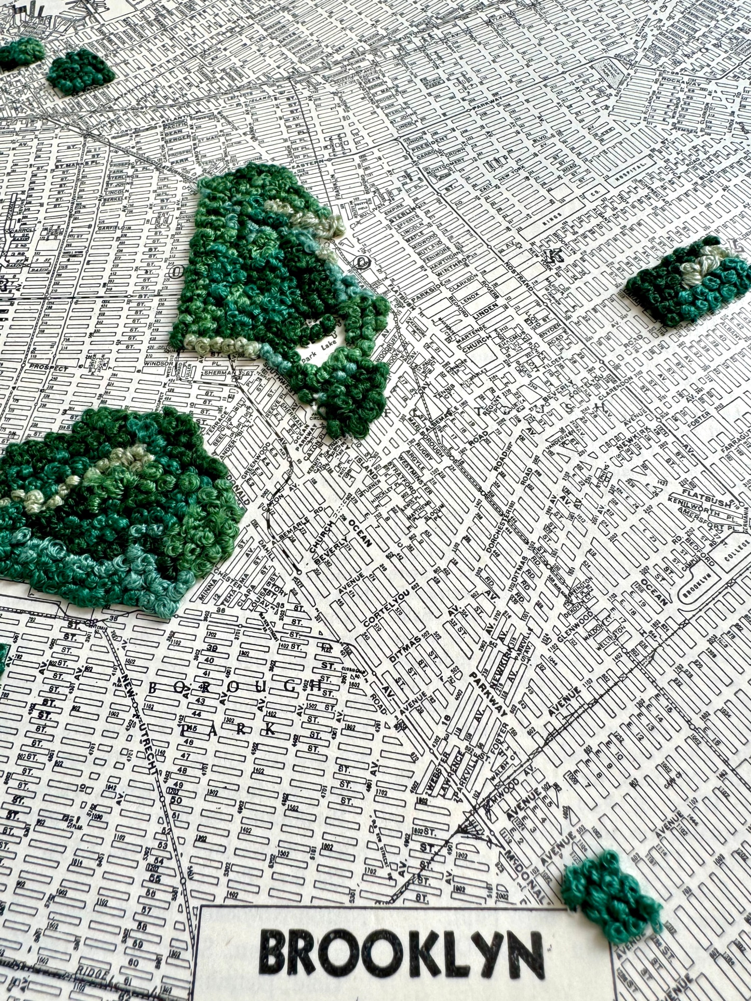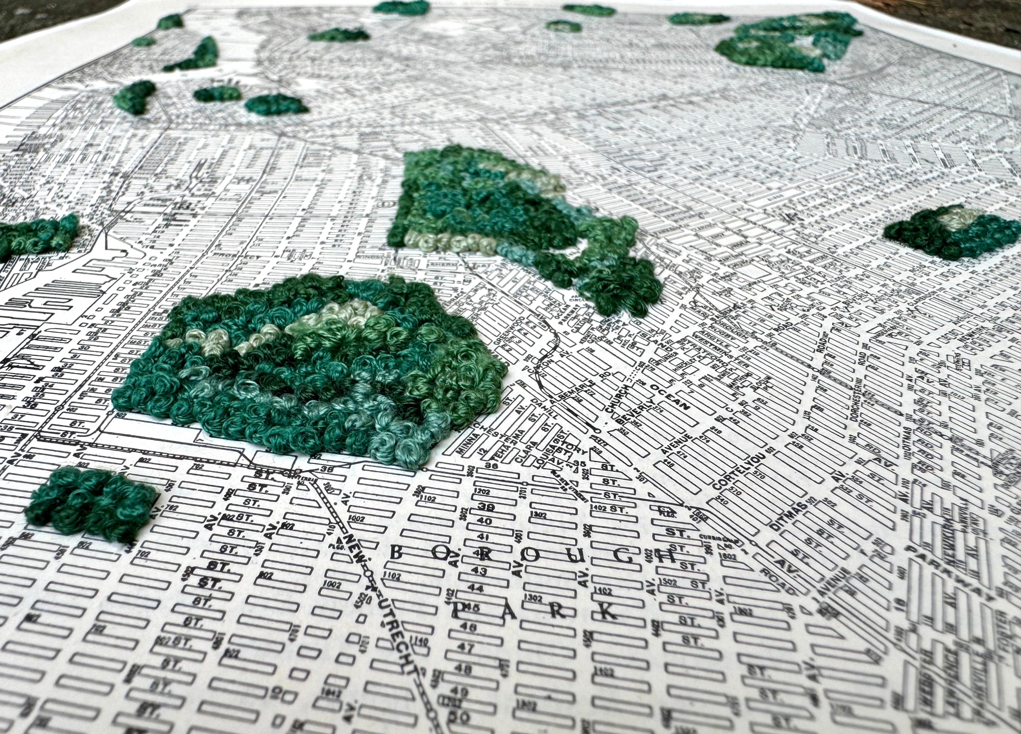 embroidery on vintage map