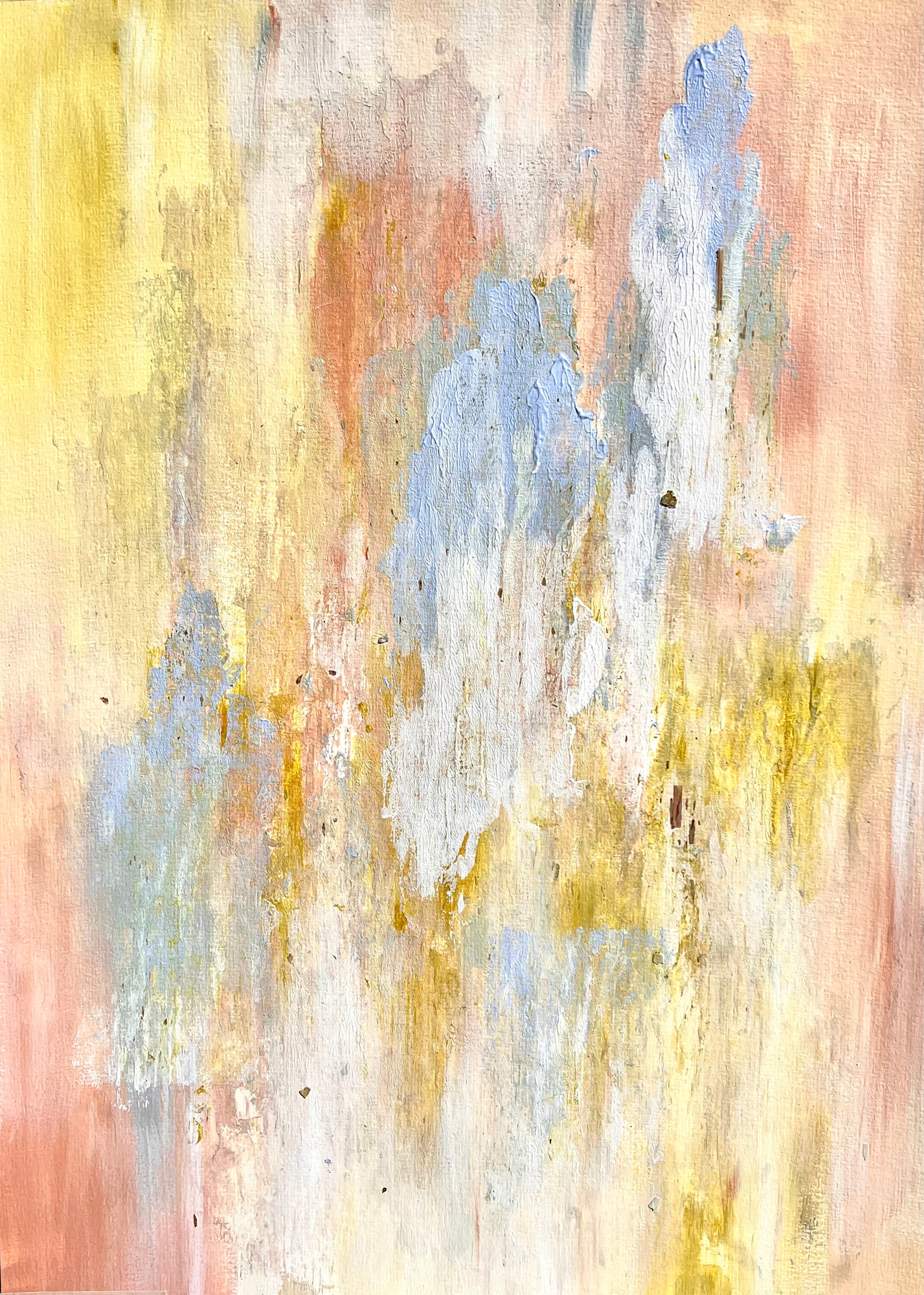 An exploration of painting with natural elements that become a part of the artwork itself. In this case, the young bark of a birch tree was used to create the textures applied with several layers of paint.