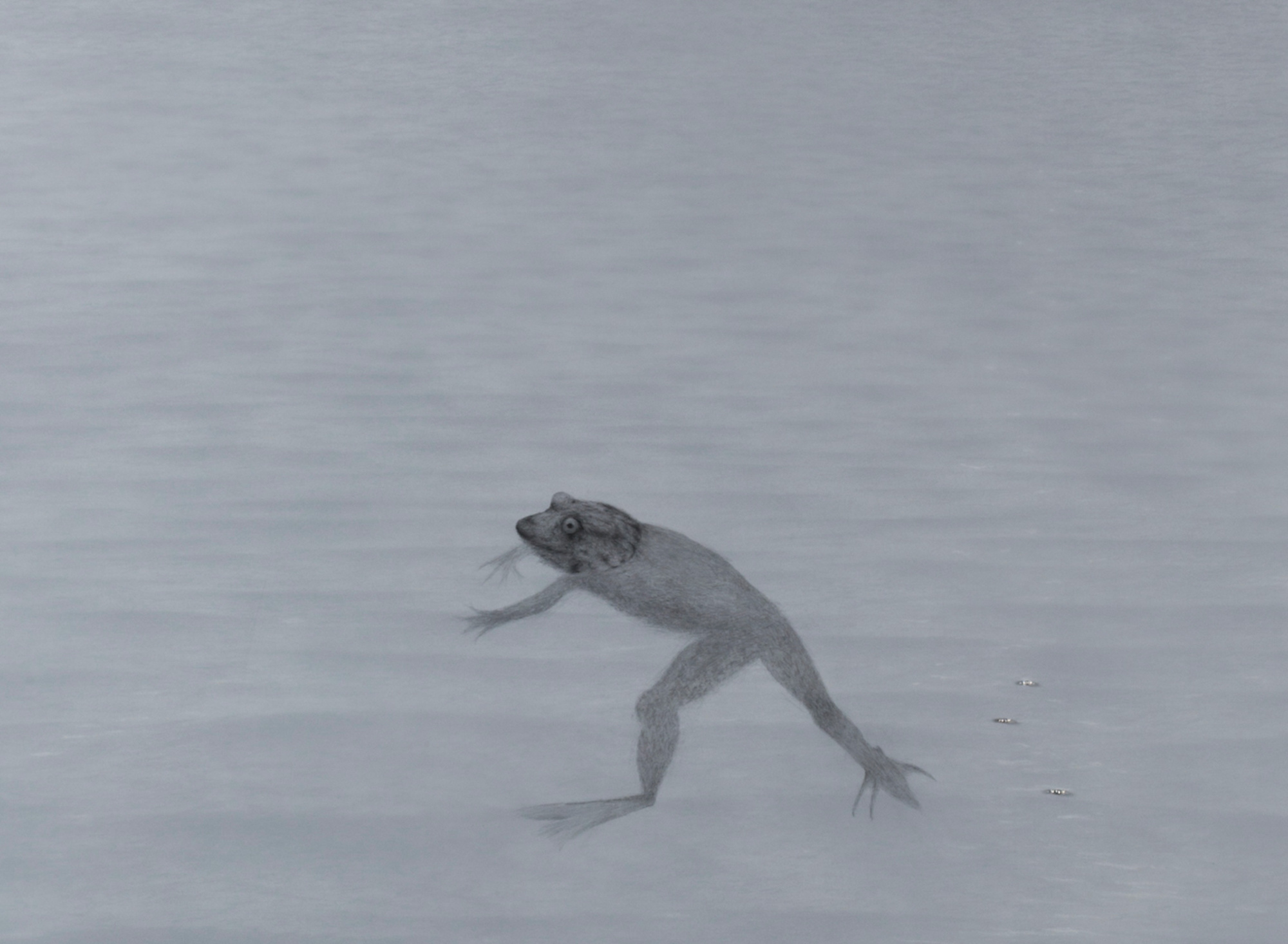 In the height of summer the frogs in my pond croak and procreate. They can also be found floating alone in a state of suspended animation. Water is their friend, and water is forever. Within this sea of isolation, the glints of light reflecting and dancing off the water’s surface chant “abandon all fear.”