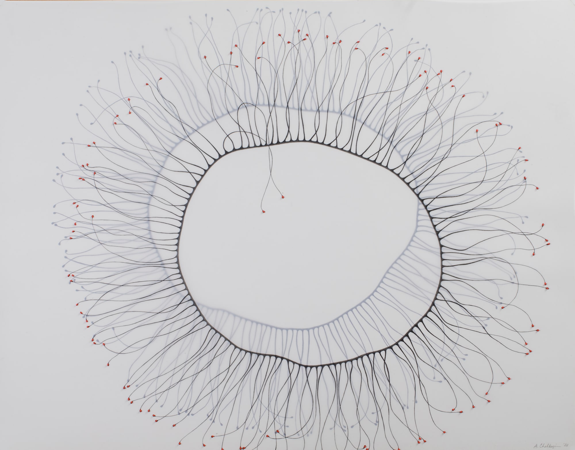 Peering into a tidal pool can induce a state of double vision. I watch, within the water, a sea anemone spreading and retracting its tentacles, while the sun’s rays simultaneously shimmy across the water’s surface. The dynamic movements feel choreographed. One actions begets another, like seeds propagating in concentric waves.