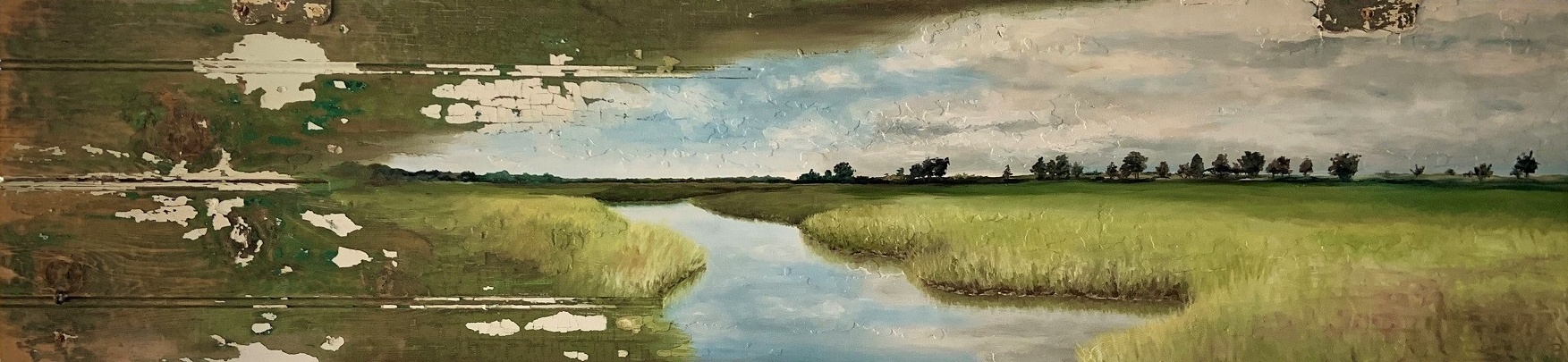Image is painted directly on to reclaimed wooden shingle using the nuances of the wood to inform the composition.