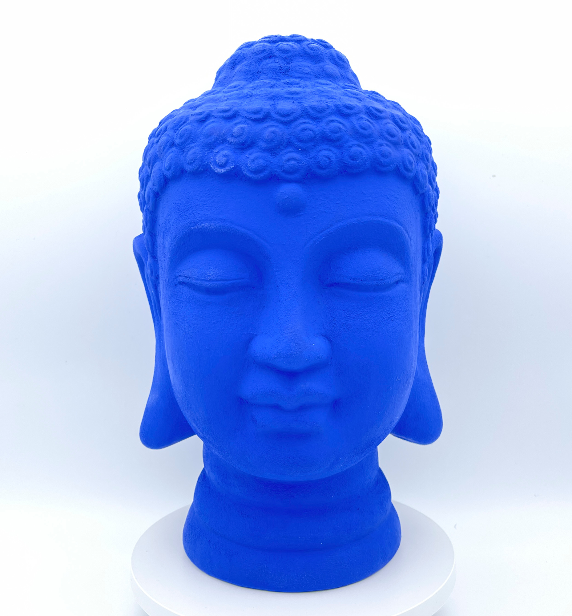 This is a textured ceramic sculpture, hand-painted in a remarkably intense shade of blue. This stunning piece demands attention, incorporating the artist's signature humour and depth.