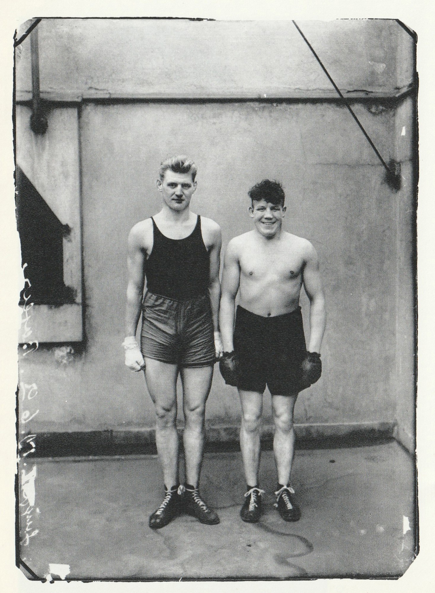 Full title is "The Boxers: Hein Hesse and Paul Roderstein, Cologne". Hesse was a popular regional champion, This iconic image is one of the most famous photographs of the 20th century, from Sander's epic series of portraits of everyday Germans.