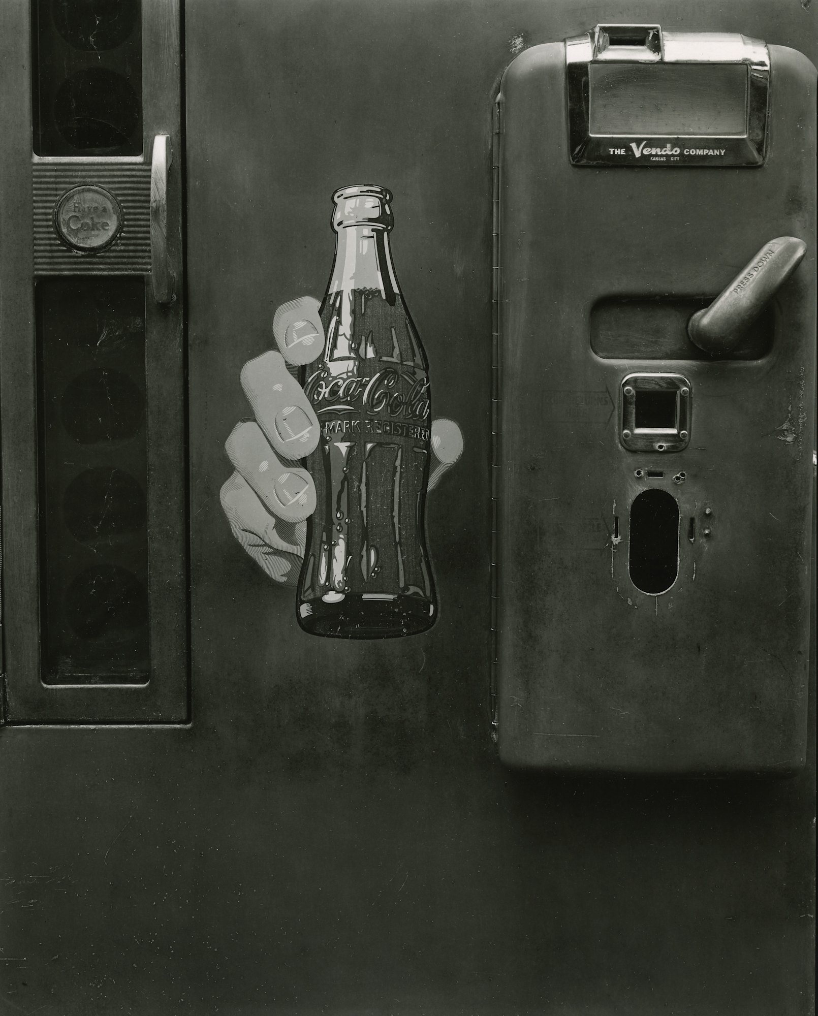Contact print from original 8" x 10" in-camera negative on 11"x12"vintage P.O.P. paper, showing entire negative. Matted to 11"x14" and framed in a stunning Coca Cola red enameled wooden frame.