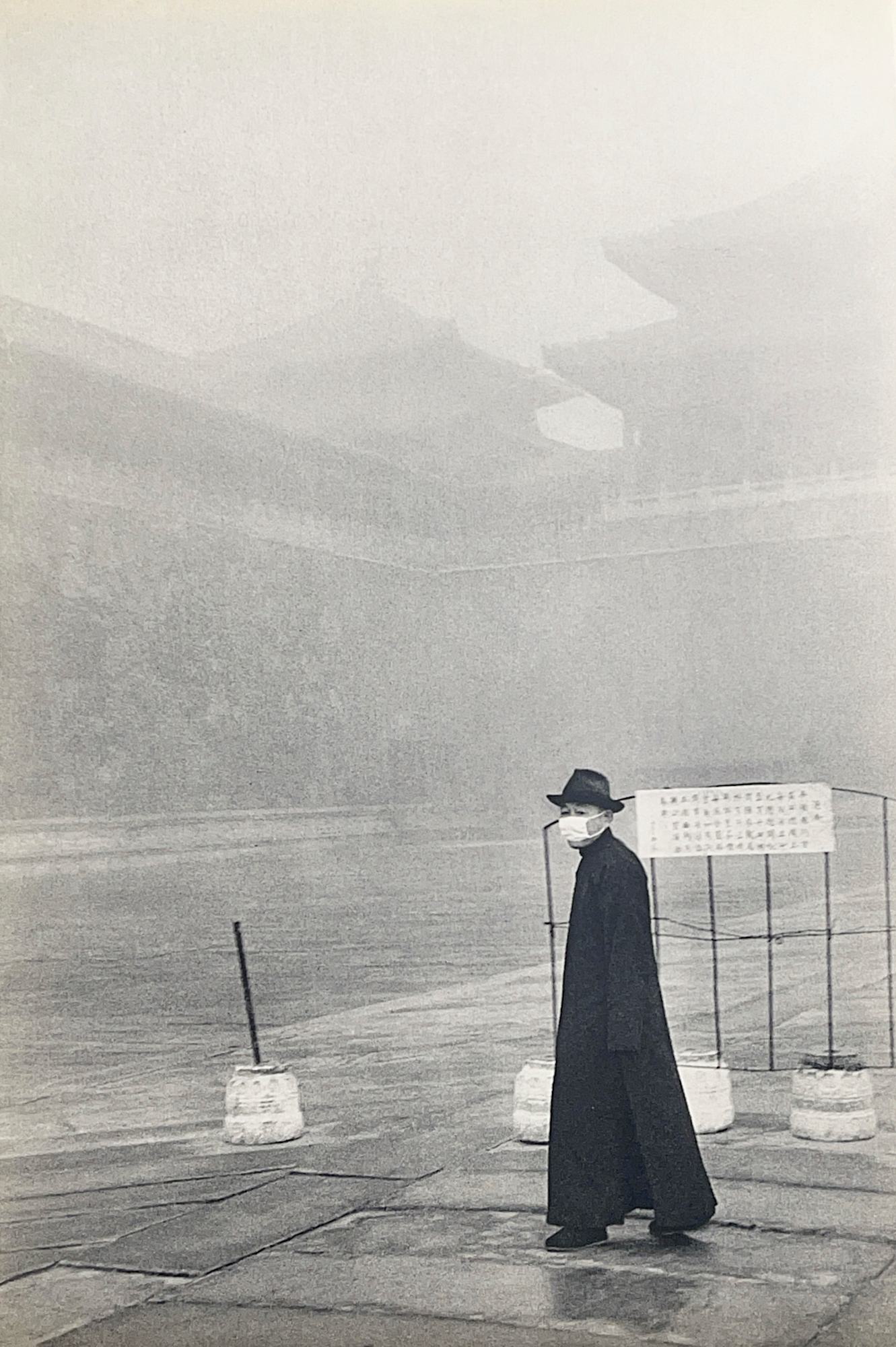 Atmospheric early morning scene with mist in an eerily empty Forbidden City in January 1949. The face mask offers some protection against pollution and infection and shows the wartime Japanese influence. This superb photograph was taken a few days before the Communists marched into the city and looks like a rich platinum print with warm tones and a fantastic tonal range.
