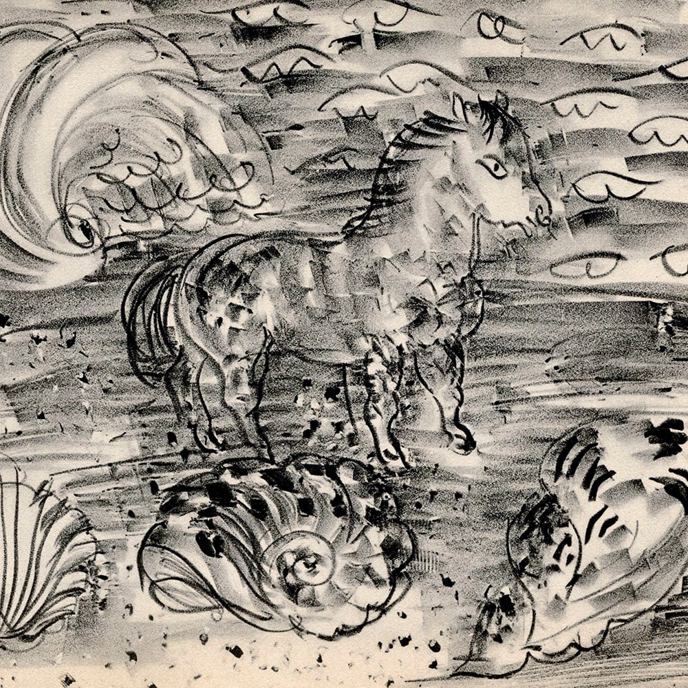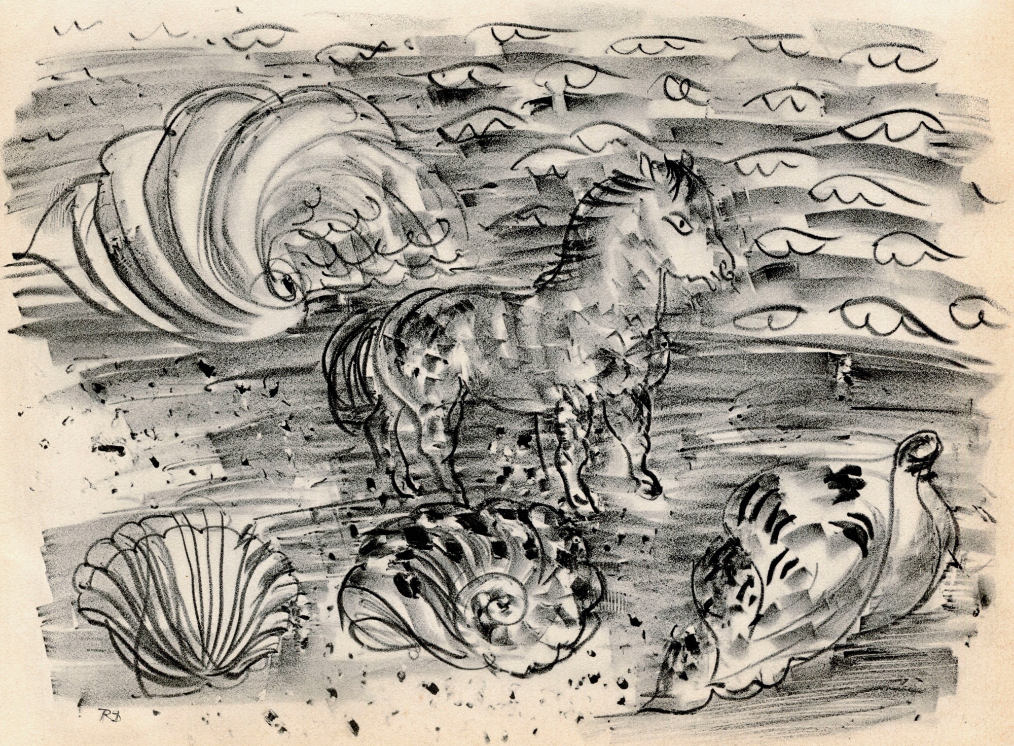 Full title "Petit Cheval Marin (Cheval aux Coquillages)". This is a delightful sketch-like work in classic Dufy style.