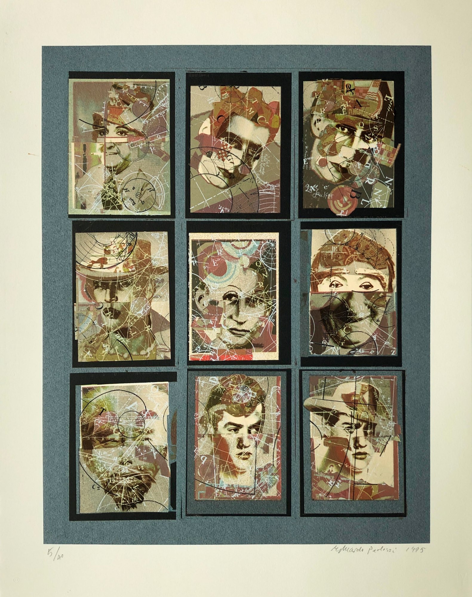 Monotype screenprint. From a collage in his "Hollywood Heads" series, Paolozzi produced 40 uniquely coloured sheets. Signed, dated bottom right, this is colour combination #5.