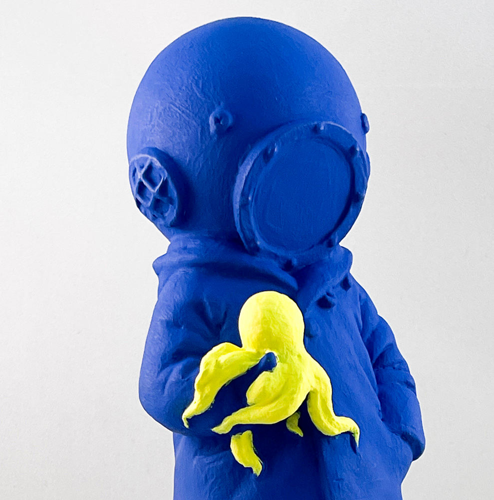 Striking sculpture hand painted in a remarkably intense shade of blue, incorporating KASM's signature humour and depth. Unique piece from his "BANKS-YVES" series of works.