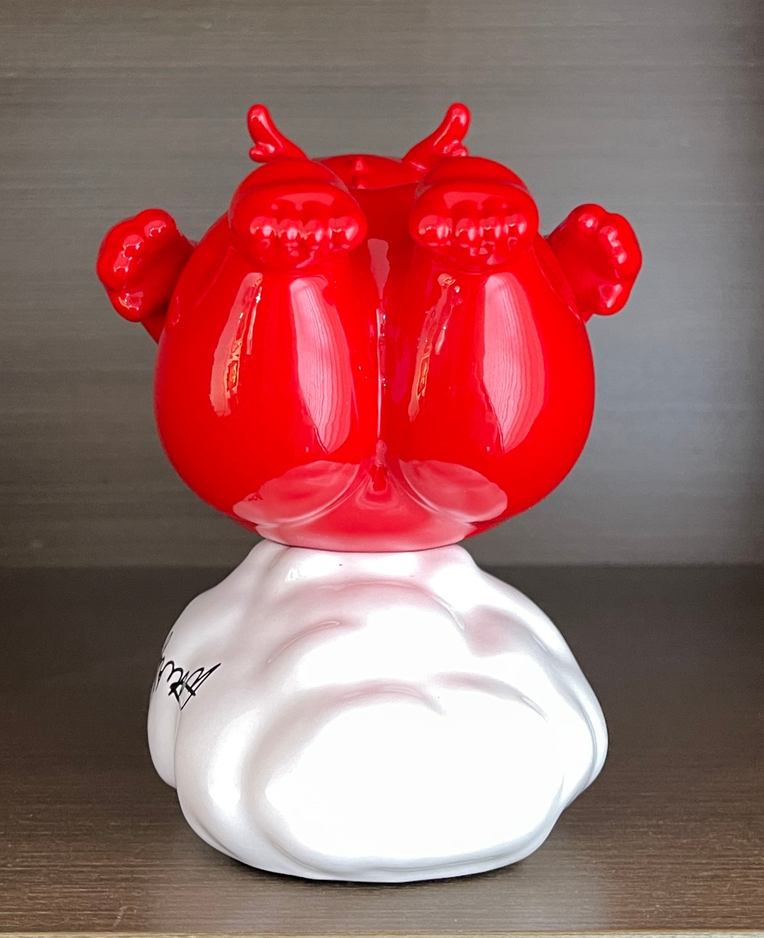 Flying red dragon on a cloud. In the words of the artist: "Let your imagination soar in freedom and awaken the dreams in your heart. I hope everyone can bravely pursue their dreams, rise to the top, and fly freely like a dragon with dreams."