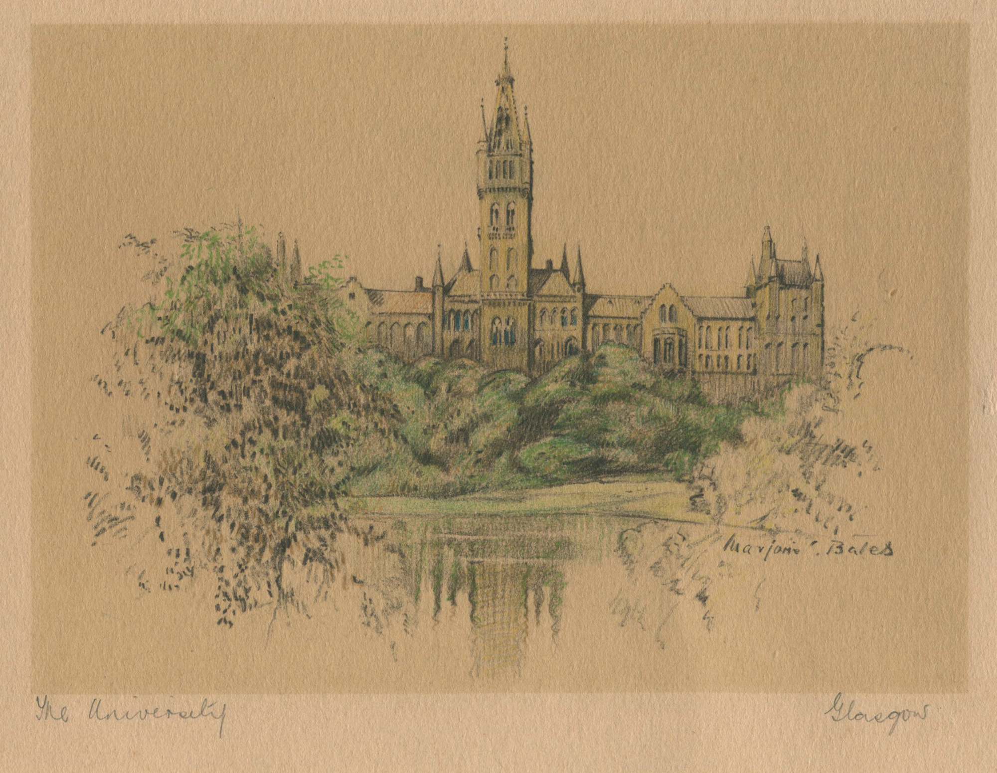 Lovely drawing of the University of Glasgow. Signed and titled.