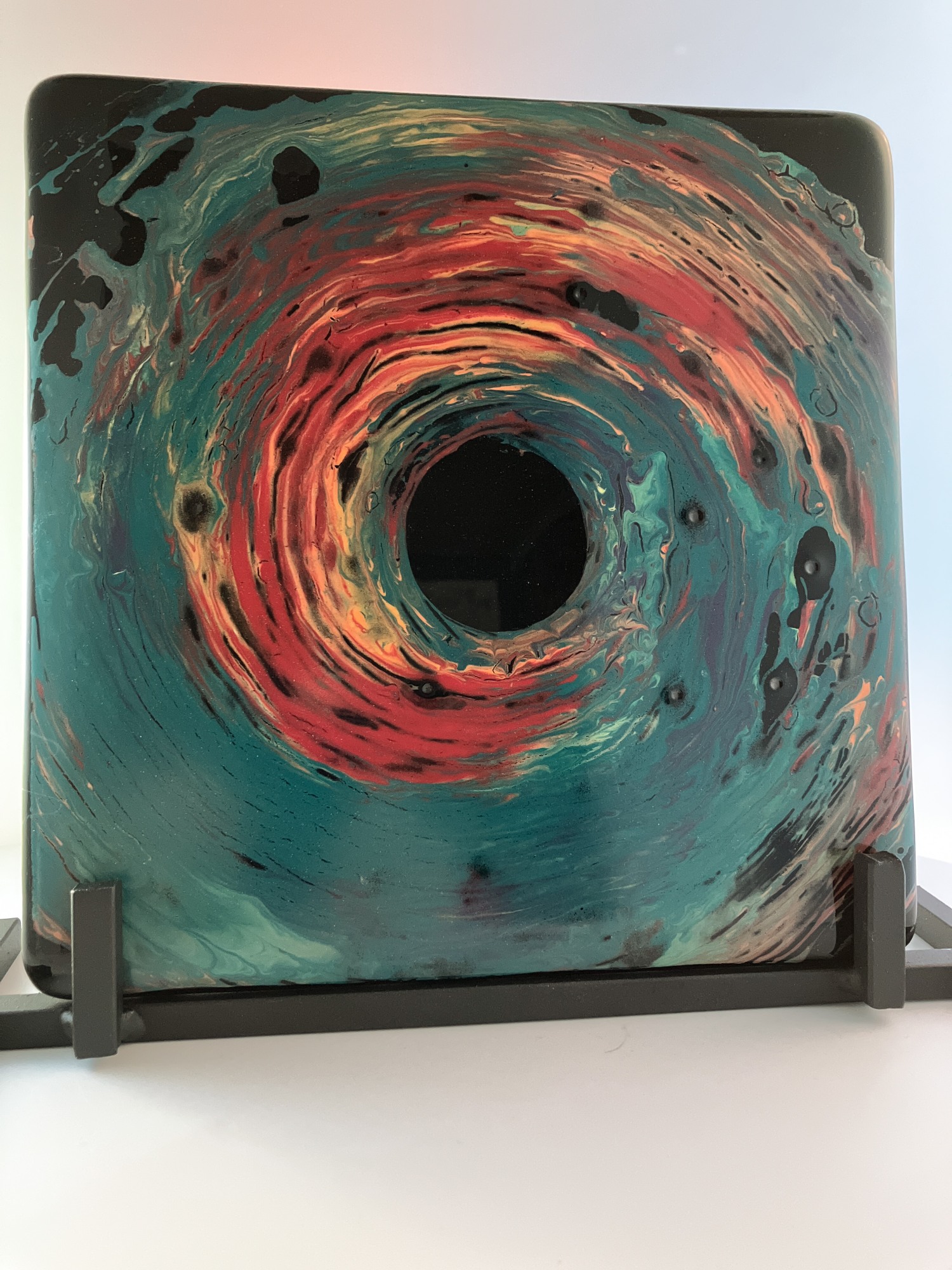 Painted glass. Big mouth glass paints full-fused onto black glass (0100).