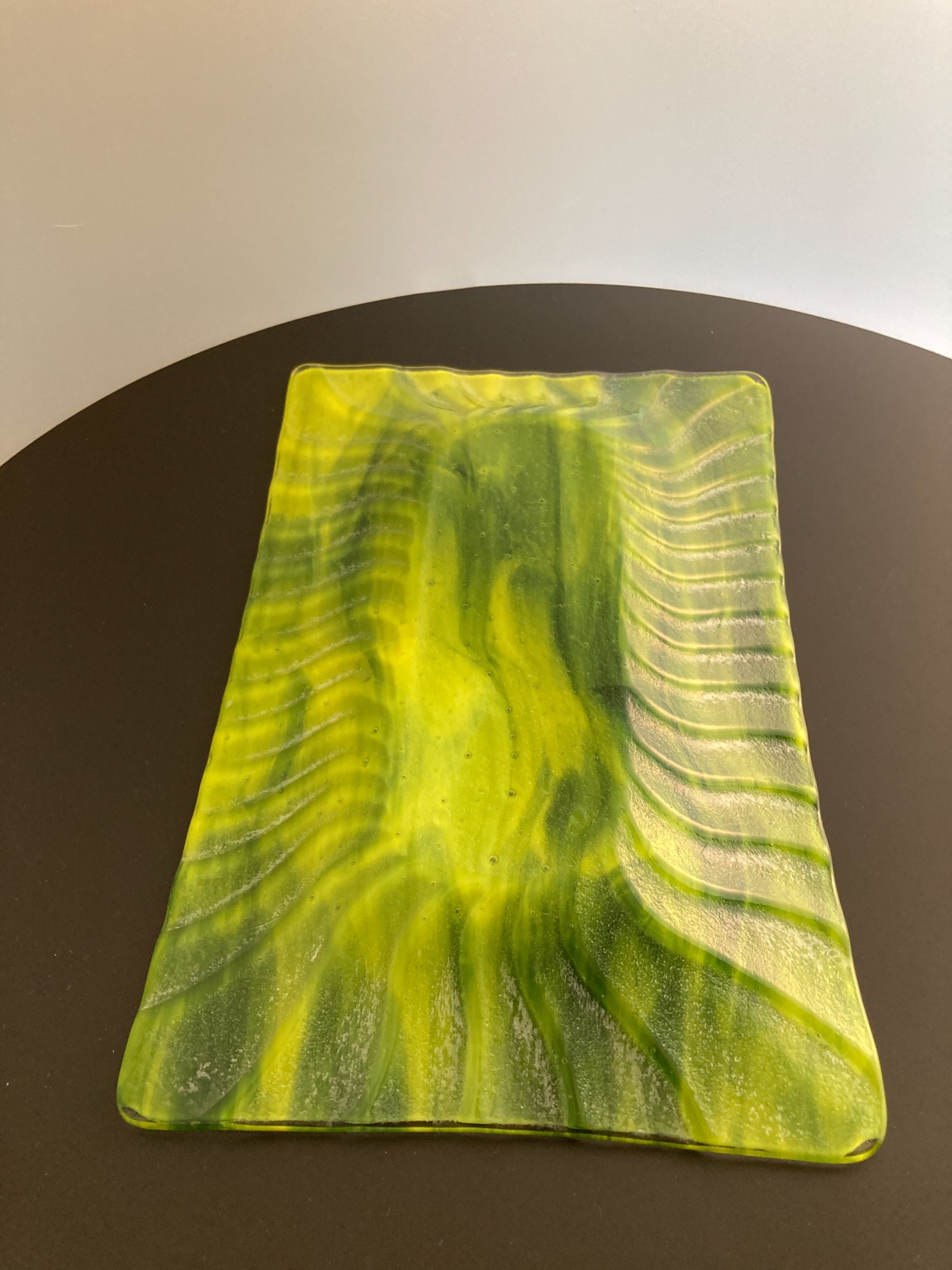 A field of summer greens swirl across this serving dish. A perfect bed for your favorite foods.