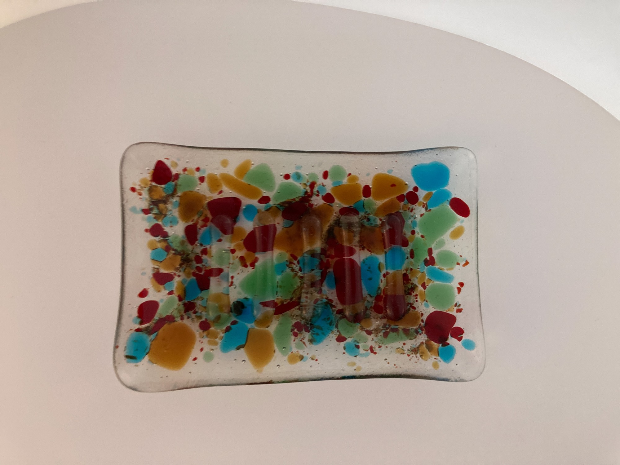 Fused glass soap dishes add a splash of color for your bathroom or kitchen. Great hostess gift, too.