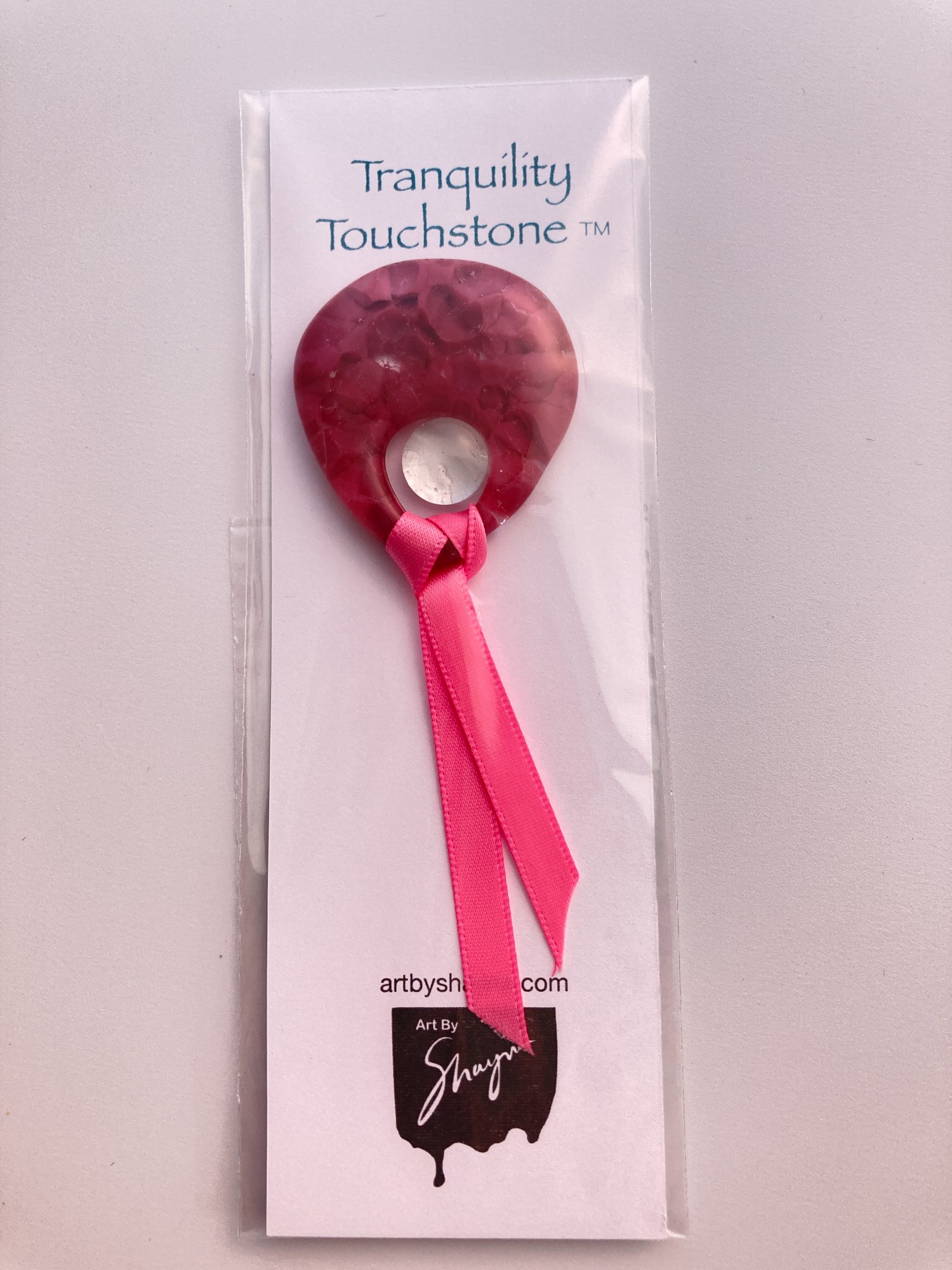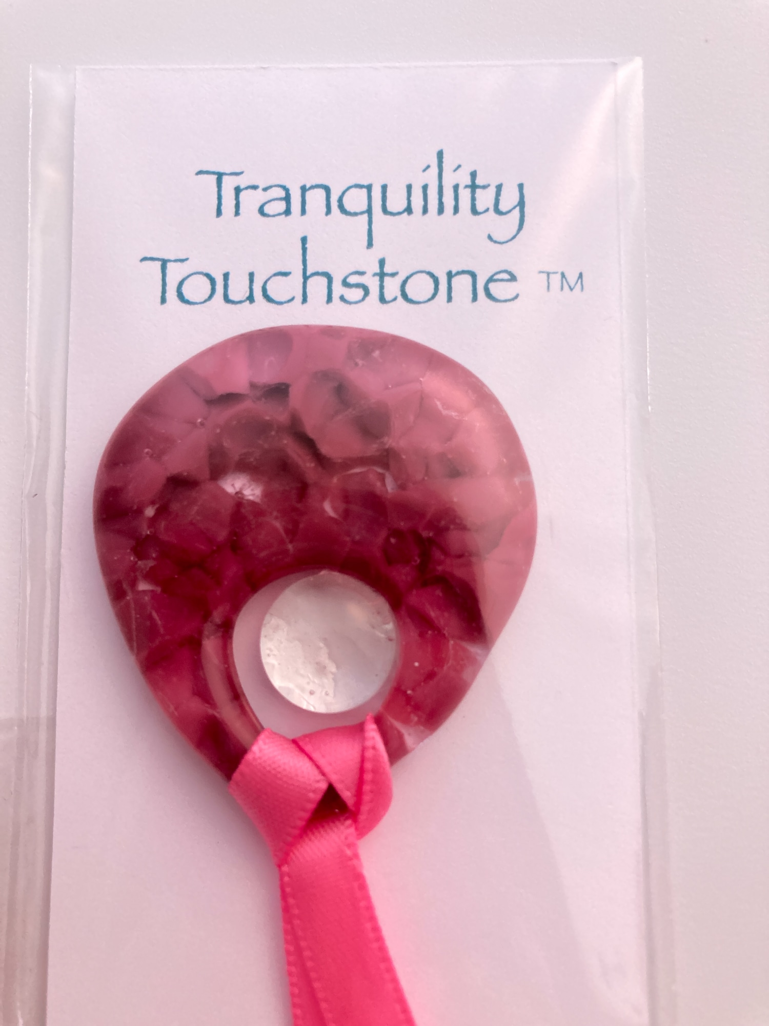Fused glass rubbing charms that people can share to show their support for those who have been touched by cancer. Their calming and soothing texture can help you focus on your senses, remind you to practice mindfulness and calm your anxiety. Easy to carry with you or wear as a pendant.