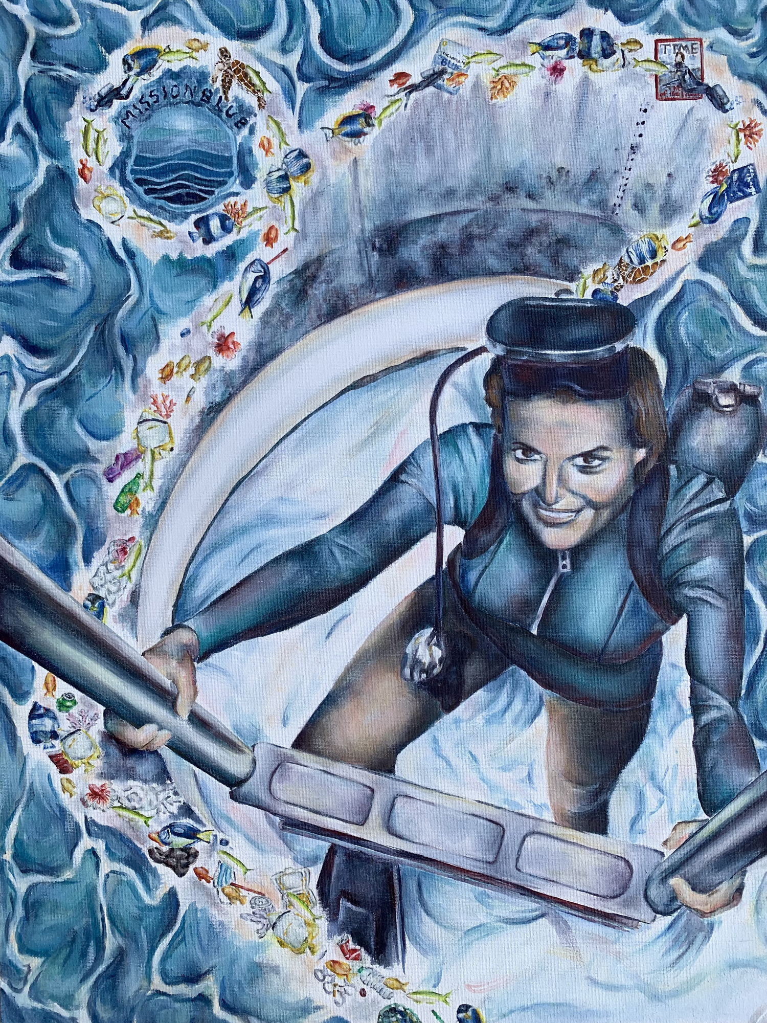 Excerpt from artist’s Impact Statement: "Researching Dr. Earle has enlightened and inspired me to share her profound impact with others and what we can all do to fight for the ocean ourselves."