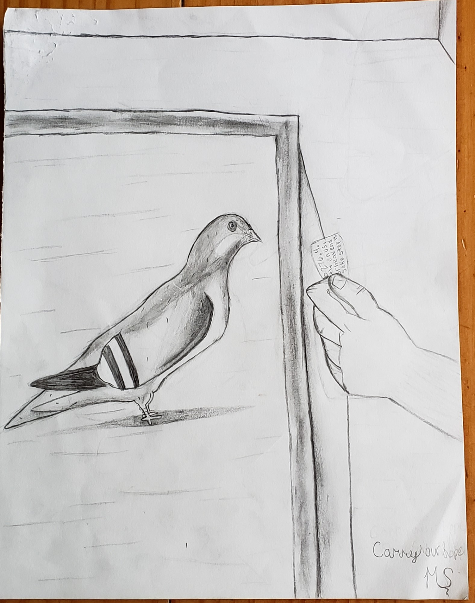 Excerpt from artist’s Impact Statement: "After reading about the heroic creature, it inspired me to have hope, to persevere through anything, and believe in myself and my abilities, the same way Cher Ami carried hope, persevered through his wounds, and believed that he could deliver the message."
