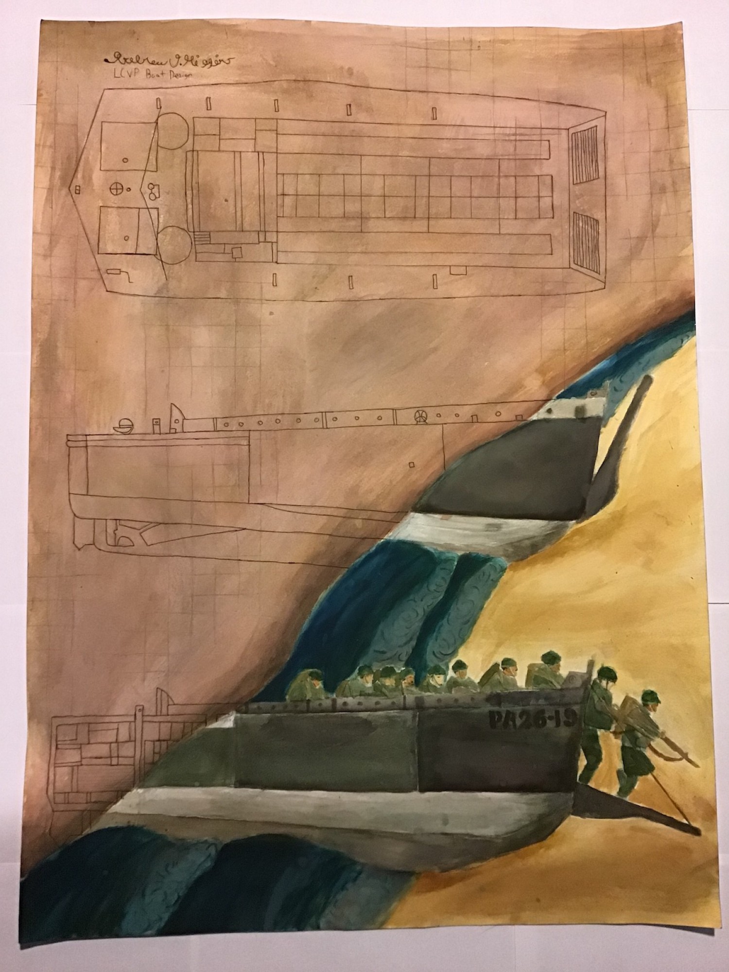 Excerpt from artist’s Impact Statement: "Something that's inspirational and a lesson I learned from making this piece is that using your gift in a time of need is one of the greatest services you can make. I learned that because Andrew Higgins used his gift of being able to make boats to help the war win and that the outcome could have changed if he did not help. ."