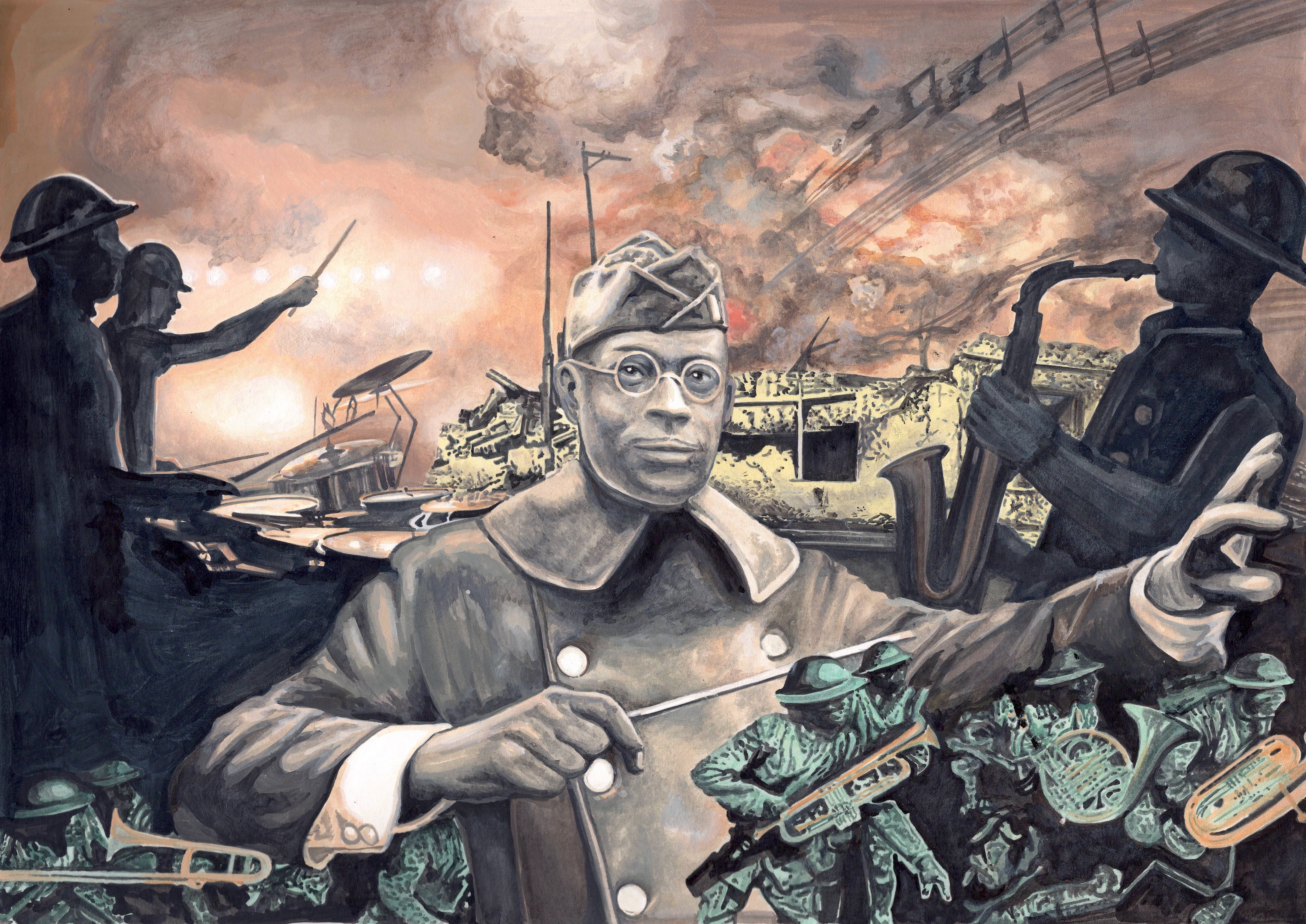 Excerpt from artist’s Impact Statement: "Mr. Europe to me, emitted a type of bravery and courage that no one else had before. War is terrifying. It is brutal, unforgiving, merciless, and the list goes on. But no matter how many haunting synonyms I write, it will never be enough to describe what war is like. However, during such chaotic times, James Europe and the Harlem Hellfighters were able to spread culture, music, but most importantly joy through their music."