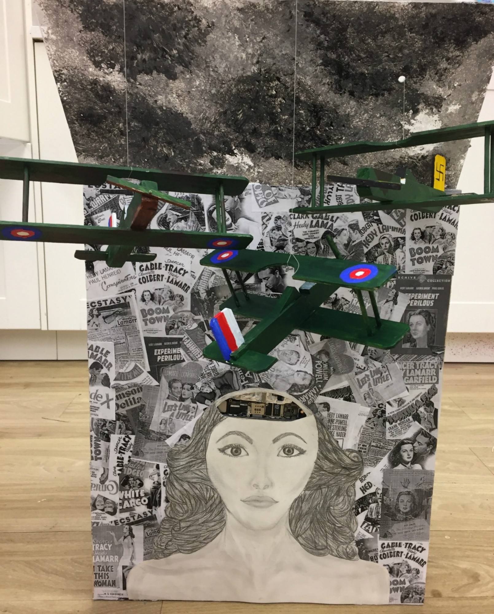 Excerpt from artist’s Impact Statement: "You will also notice that the top of [Lamarr's] head is missing. Inside, there is an electrical component. This is meant to represent Hedy’s ease with teaching herself complicated subjects such as aerodynamics, working with war weapons and knowing how they work, and the science behind radio, making seem like she was almost programmed to do that since she was introduced to the Hollywood industry."