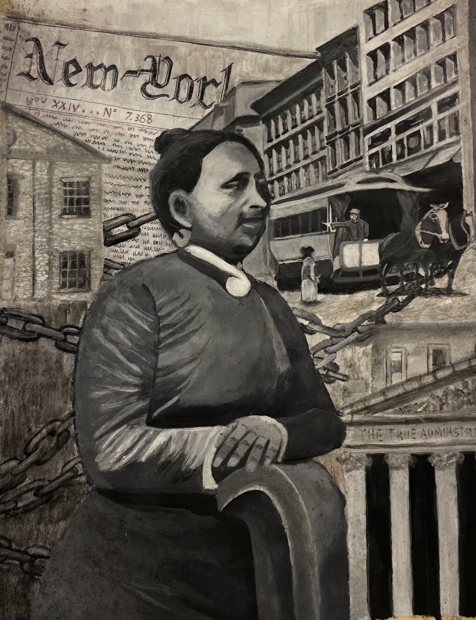 Excerpt from artist’s Impact Statement: "When the build-up towards the Civil War was taught in my AP US history class, there were no mentions of Elizabeth Graham. Only 3 abolitionists were mentioned, only to be barely acknowledged. Only through this contest did I learn about Elizabeth Jennings Graham. Like many of the other unsung heroes, Elizabeth Graham deserves recognition for the impact and significance she brings to history."