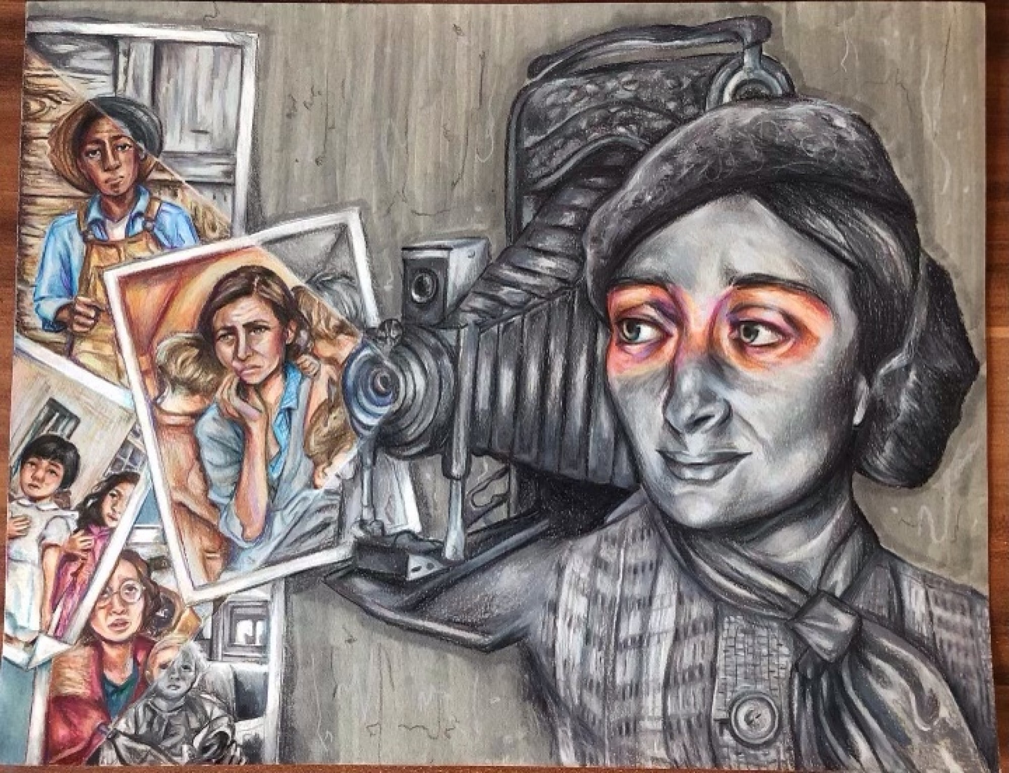 Excerpt from artist’s Impact Statement: "Dorothea Lange inspires me because her story attests that art is a powerful tool for change. She captured the breadlines and labor strikes of the urban Depression, and later the migrant farmers who fell victim to the Dust Bowl in rural America.."